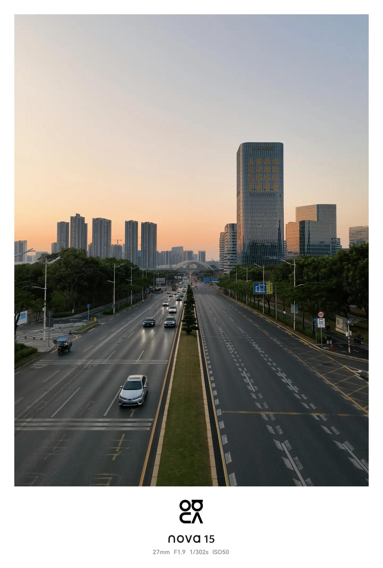 《nova15今天傍晚拍的三张照片》第1张是用三脚架+蓝牙控制器给自己拍的,跳起来的同按下快门。第2张是同场景、风光照片。第3张是马路与城市的晚霞。nova15 影像 动漫 电影 个性色卡 出片 nova15好玩的都来沾边 用红枫准没错