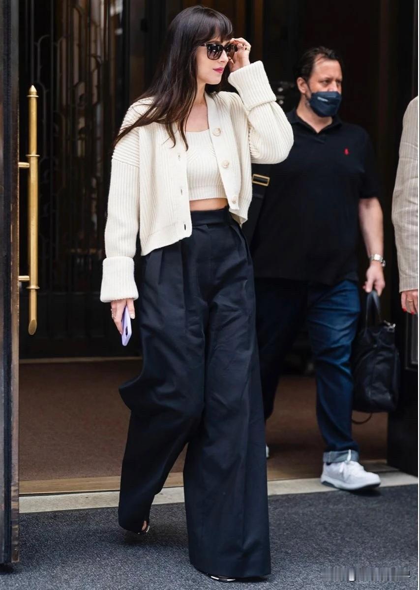 达妹的审美是"高智松弛感"的标杆。她从不堆砌logo,而是用基础款+好版型,把"毫不费力的高级"刻进了骨子里。 她偏爱低饱和色系,用黑、驼、燕麦色营造冷静氛围,再用一件微喇牛仔裤或垂感风衣来拉长比例。 她的性感从不露骨,而是来源于"半塞衣角的腰线"或"宽松针织衫下的纤细脚踝",这种"克制的性感"让她的风格耐看又有韵味。