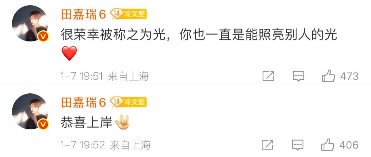 一位在考编路上挣扎了数年的网友,在自我怀疑中快要放弃,因为看了田嘉瑞的一篇报道,让她不再迷茫,把自己从对结果的焦虑拉回到对过程的专注,最后成功上岸!她在超话里发文田嘉瑞上线回复:“很荣幸被称之光,你也一直是能照亮别人的光。恭喜上岸。”田嘉瑞 很荣幸被称之光田嘉瑞恭喜非粉网友上岸