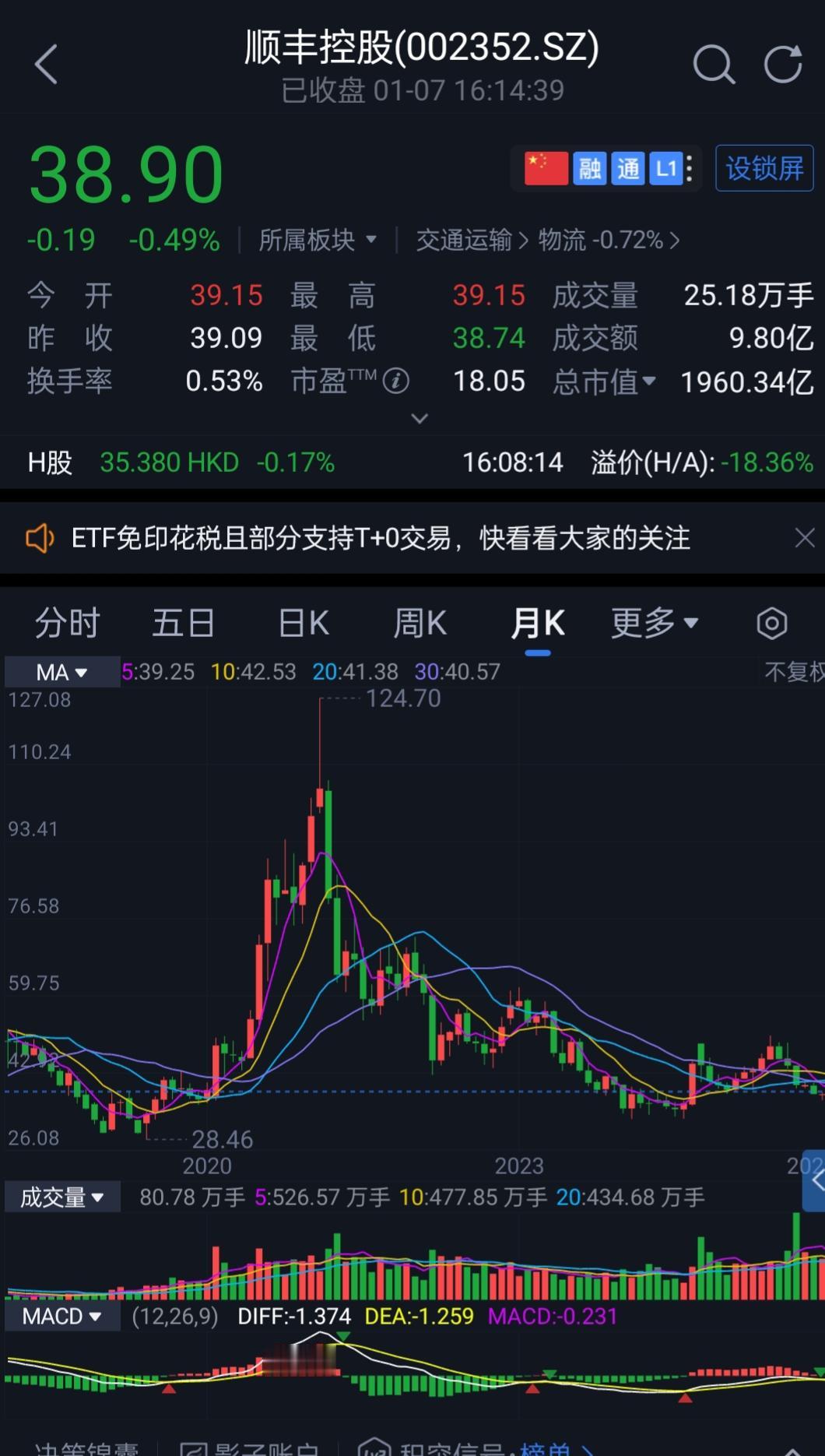 顺丰控股2024年股息率冲上4%,在A股市场里,这数字相当“吸睛”。作为物流龙头,公司营收和利润还保持着双位数增长,业绩确实硬气。 不过,这高股息背后,是分红比例的骤然提升——股息支付率从前一年的35%猛增至87%。这笔“意外之财”能不能年年有?恐怕得打个问号,还得再看看。 值得玩味的是它的市盈率,现在大约18倍。一家成长型公司配上这样的股息率,总让人觉得有些不寻常。 回顾过去十年,顺丰是不折不扣的大牛股。股价从2016年低点的15元(除权后)一路狂奔,到2021年摸到124元高峰,五年翻了八倍。但同期,它的净利润从11亿到42亿,营收从570亿到约2000亿,都只增长了约四倍。显然,股价多涨的那部分,是估值给的——市盈率从40倍膨胀到了80倍。 泡沫终究会破。股价随后从124元的高峰跌落,最低触及30多元,估值也回到了15倍左右,挤掉了大部分水分。 这事给投资者上了一课:股价飞得再高,最终还得靠利润增长来支撑。否则,从哪里涨上去,就可能跌回哪里,甚至更低。高股息是真情回馈,还是难以持续的“糖衣”?顺丰的下一步,值得仔细掂量。