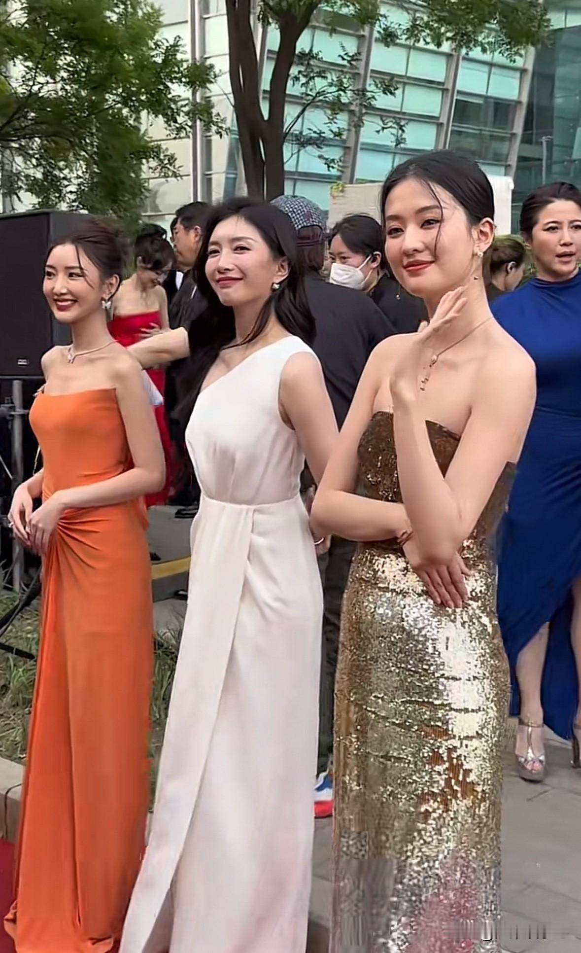 三位女神穿着精致的礼服,一个比一个漂亮!
