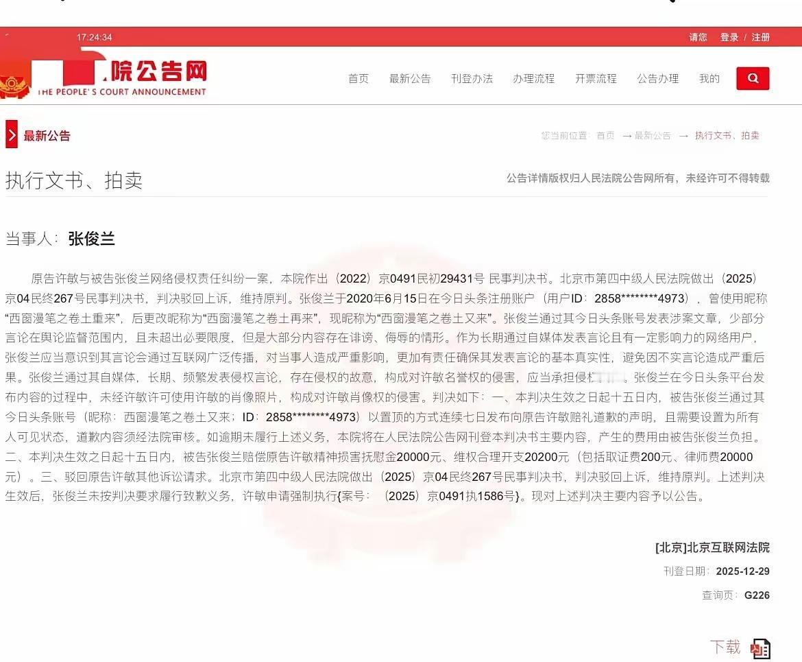 二八换子事件,许敏追查真相。追查真相路上,对两个侮辱诽谤她的写手,进行了诉讼。这两个人一审二审都输了guan司,还不主动赔款道歉,现在公告都出来了,每个人都是四万多元:赔偿精神抚慰金20000元,维权合理开支一个20500元、一个20200元,等着F院强制执行。 网上非法外之地,再嘴硬,这个款项道歉也得做。 你知道她们都是谁吗? 二八事件 28换子案 二八新进展 二八案件 28年换婴案