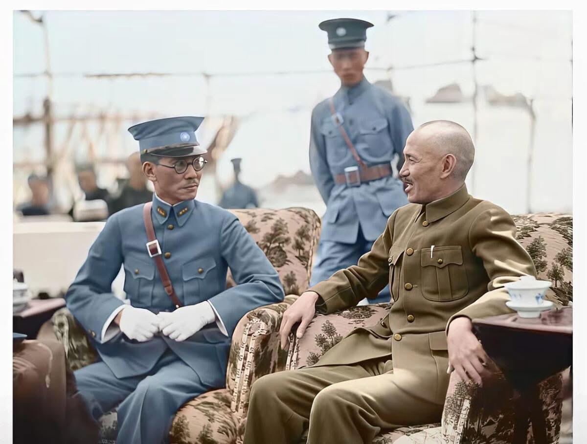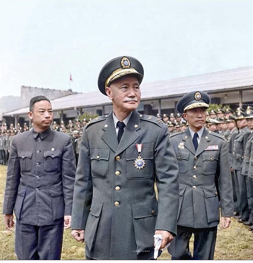 弥足珍贵的老蒋历史影像(彩色) 图一:1967年老蒋夫妇召见侍从武官宋亨霖并合影。 宋亨霖后面做了宋美龄30年的贴身侍卫,甚至宋最后离世也是其最先发现的。如此深受信任,可见其为人之谨慎。 图二:抗战期间,老蒋与戴笠、美方代表等会后合影。 照片中右边那位背对着穿西装的是谁呢?有知道的哥们不? 图三:老蒋留影,其身后的又是哪位侍从官呢?中山装一穿不是贴身侍从就是秘密特务。 图四:老蒋父子俩合影,感觉还是养子蒋纬国更像爹。 图五:1958年,陆军指挥参谋学校10期毕业典礼,老蒋正步入会场。 其身后俩随从都是谁呢?中山装的那位眼神犀利很有气场啊! 图六:1936年7月,云南王龙云与老蒋合影,龙的假眼还是相当显眼啊。 图七:1947年,是蒋介石与郑洞国、廖耀湘合影。 不知道他们会不会预见到仅仅一年后,国军便是兵败如山倒,时局一发不可收拾。 图八:抗战期间,成都中央军校,老蒋正给关麟征颁授的是证书还是军旗呢? 关将军人称“关猛”,生性豪迈,自长城抗战开始先后转战保定、台儿庄、武汉、长沙等地与日寇浴血奋战,颇有威名。其麾下更是猛将如云,杜聿明、郑洞国、刘玉章、覃异之、张耀明等皆是抗日名将。 图九:1933年,云南,老蒋与龙云合影,龙一身老财主的行头,背着双手。 此时应该是老蒋有求于龙,希望其一起专心围堵红军。老照片 历史人物 抗日战争 结语:欢迎朋友们关注、点赞,评论区发表宝贵观点与建议,并将来自己感兴趣的历史事件留言下来。我将尽力搜集资料,整理成篇,与您共勉! 您的慷慨支持是我持续创作更新的永续动力。文中常有时间地点不详或地名无法译出之状况,若您有案可查,请帮忙斧正补充!