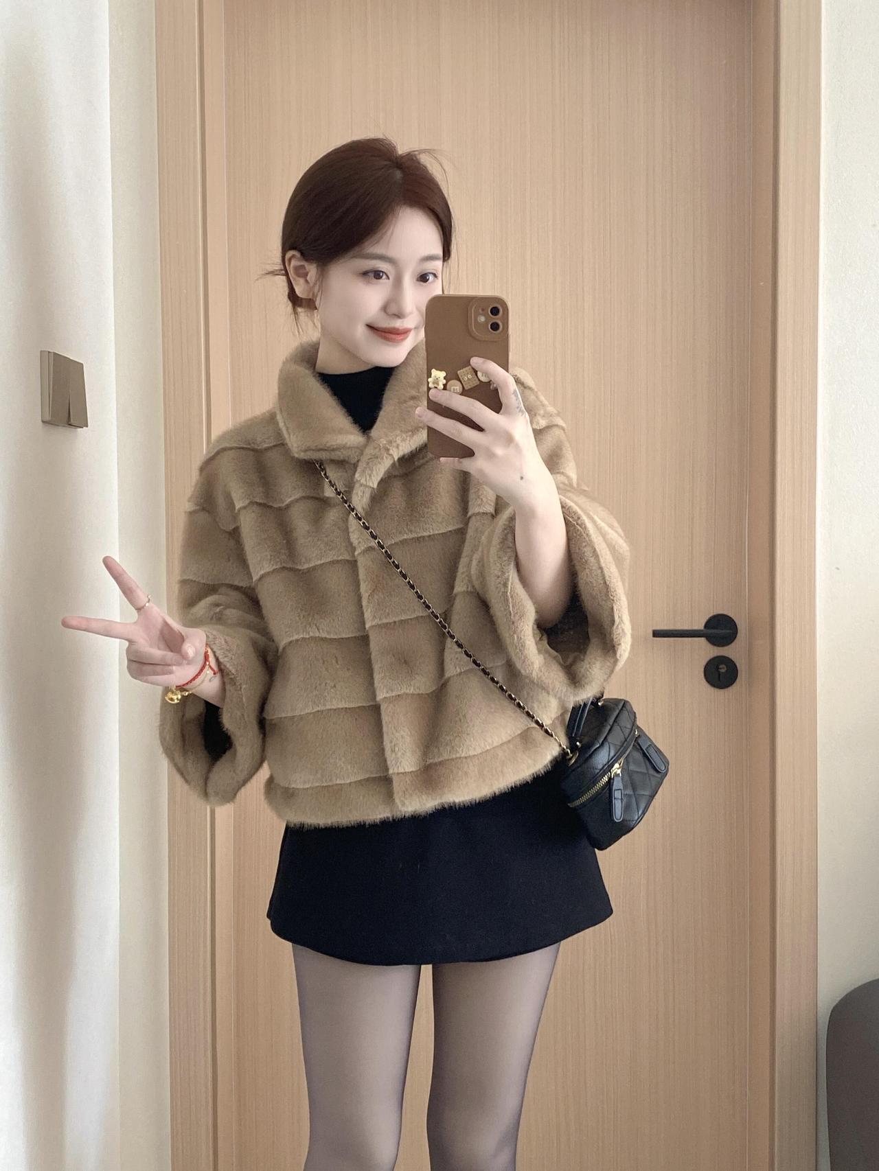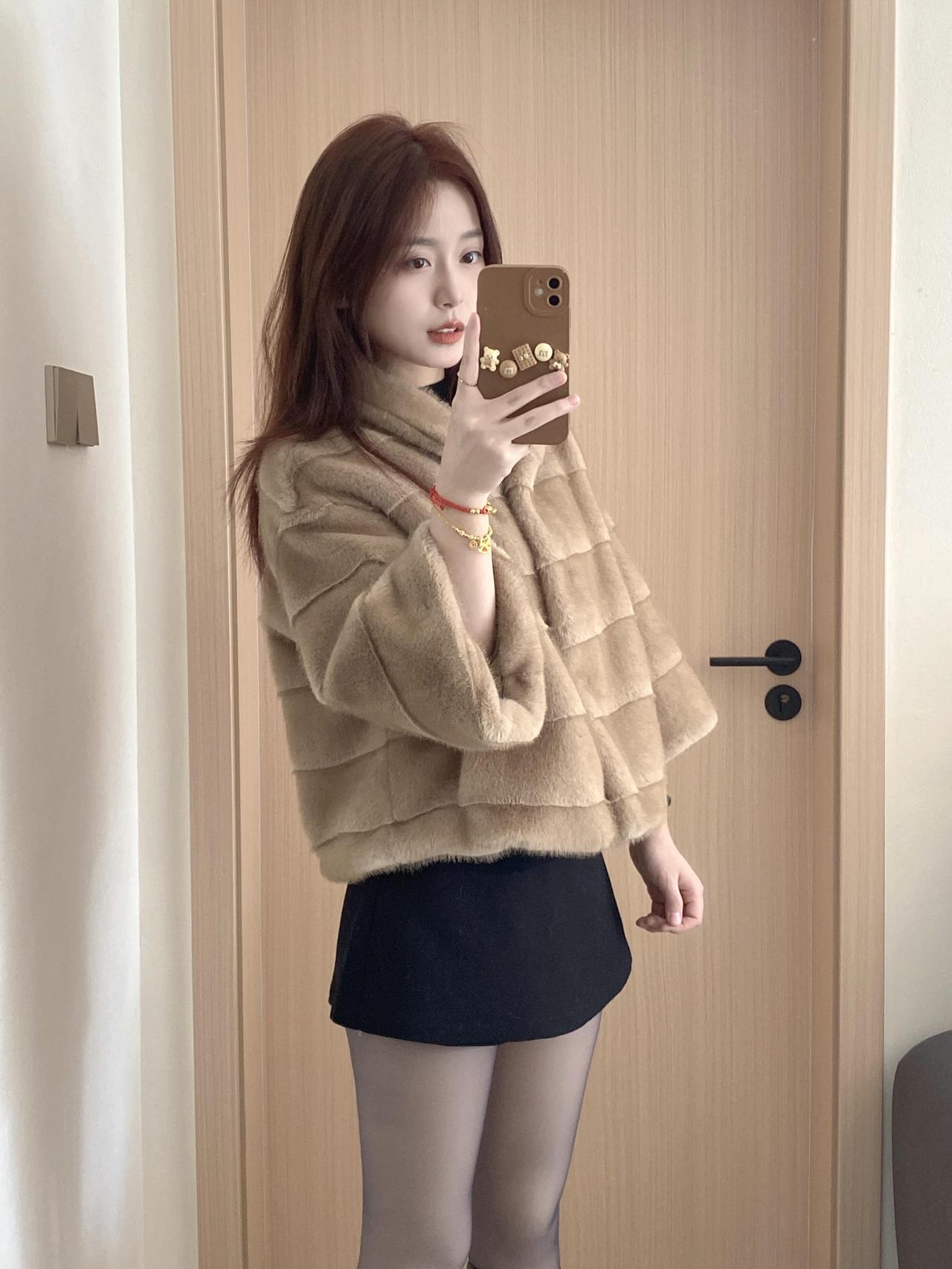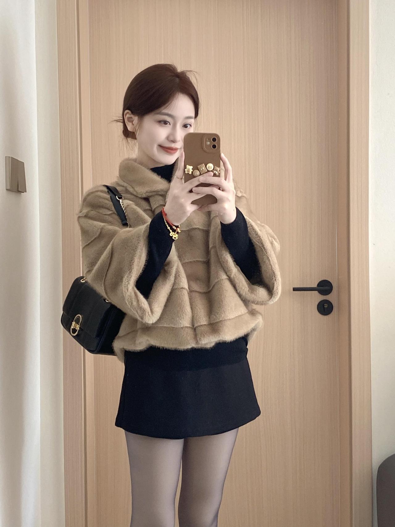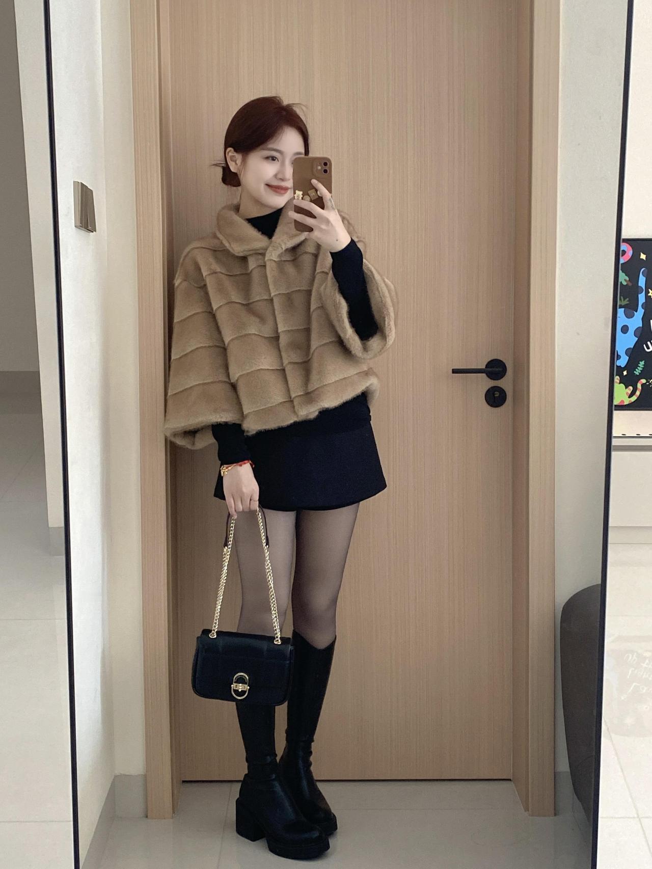 冬日暖阳下,黑皮草与黑丝袜的完美搭配,尽显优雅与时尚。