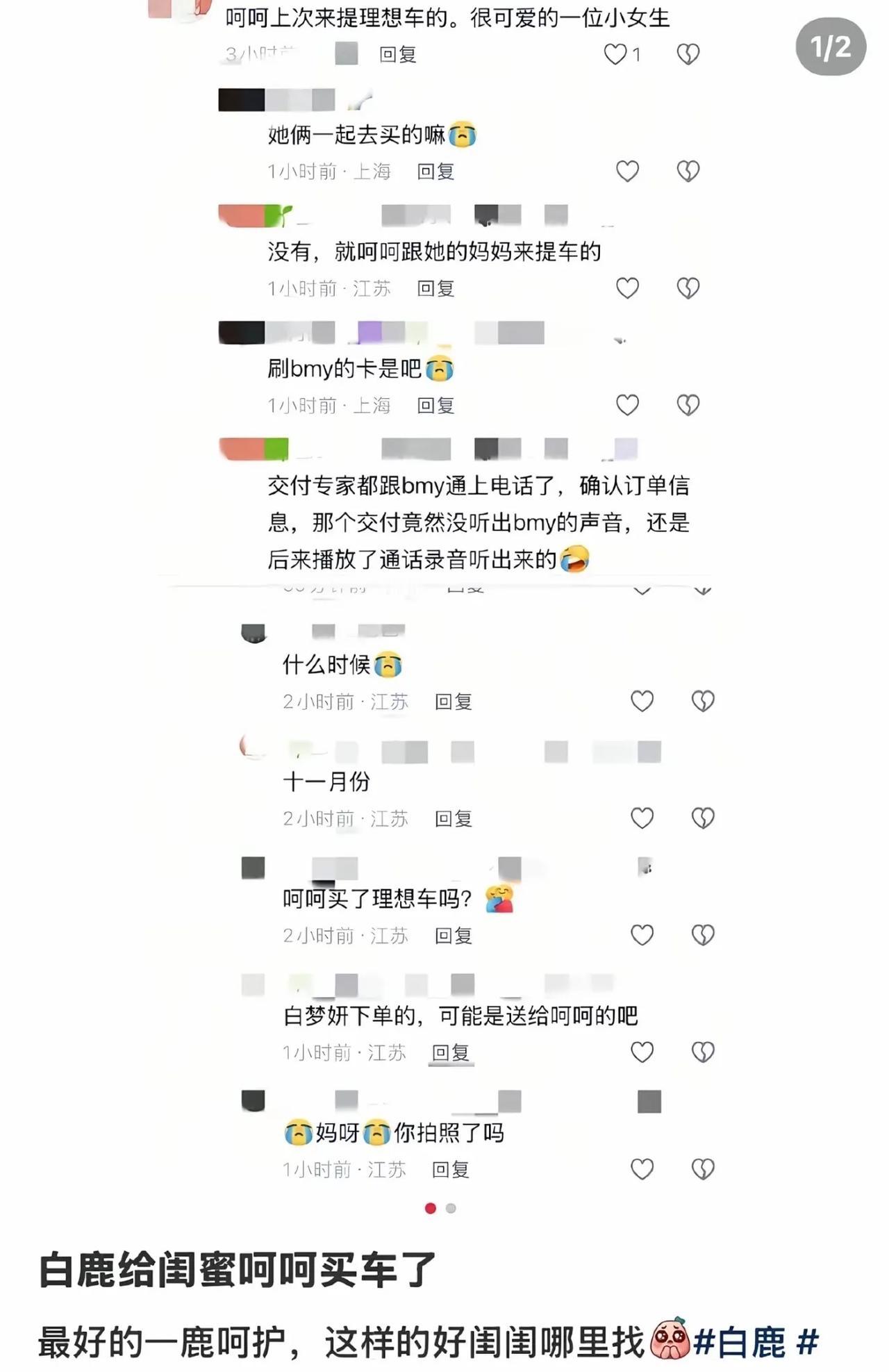 白鹿给闺蜜呵呵买几十万车。 据网友分享,白鹿给闺蜜呵呵买车了,这是什么神仙闺蜜啊!“一鹿呵护”双向奔赴的感情真的太好磕了! 呵呵2021年给白鹿的生日视频里有提到,那个时候呵呵还是猫的树的助理,帮忙拍照的,然后白鹿拍了猫的树的作品,两个人就认识了。 白鹿一句“来陪我,我养你”,呵呵就辞掉工作,化身全能小助理,做饭、剪辑、管行程,把白鹿的生活和工作打理得明明白白,陪她走到现在。如今白鹿成顶.流,自然要把闺蜜宠成公主啦! 这段友谊也不止十年了,几乎是出了学校就认识的好朋友,你想想从白鹿不火到成为娱乐圈游刃有余的扛.剧.花,重要时刻她俩都在一起,肯定清楚对方的好啊!从出租屋到星光大道,这份不掺杂质的陪伴,才是最让人羡慕的!