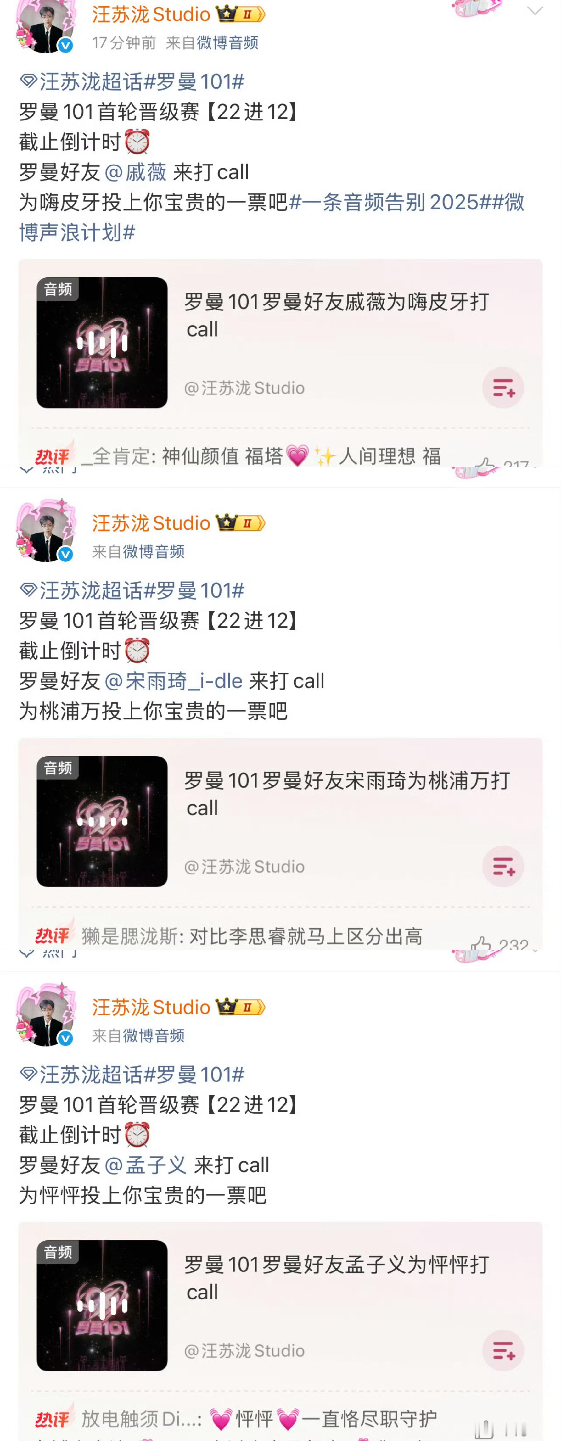 汪苏泷 罗曼城人脉哈哈哈谁看了不说一句泷哥人脉逆天罗曼101首轮就卷成了人脉考场,活动直接摇来欧阳娜娜、李雪琴、宋雨琦、戚薇等一众艺人,个娱乐圈都来罗曼城当投票加油团了吧哈哈哈咱就是说姐妹们这一波必须速速跟投起来,帮你最pick的小怪物晋级c位出道啊