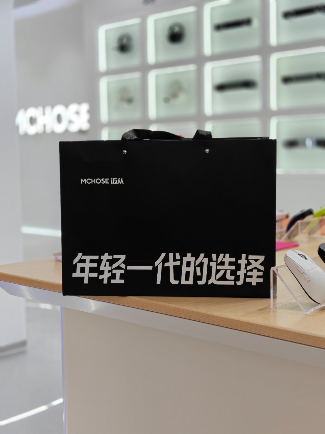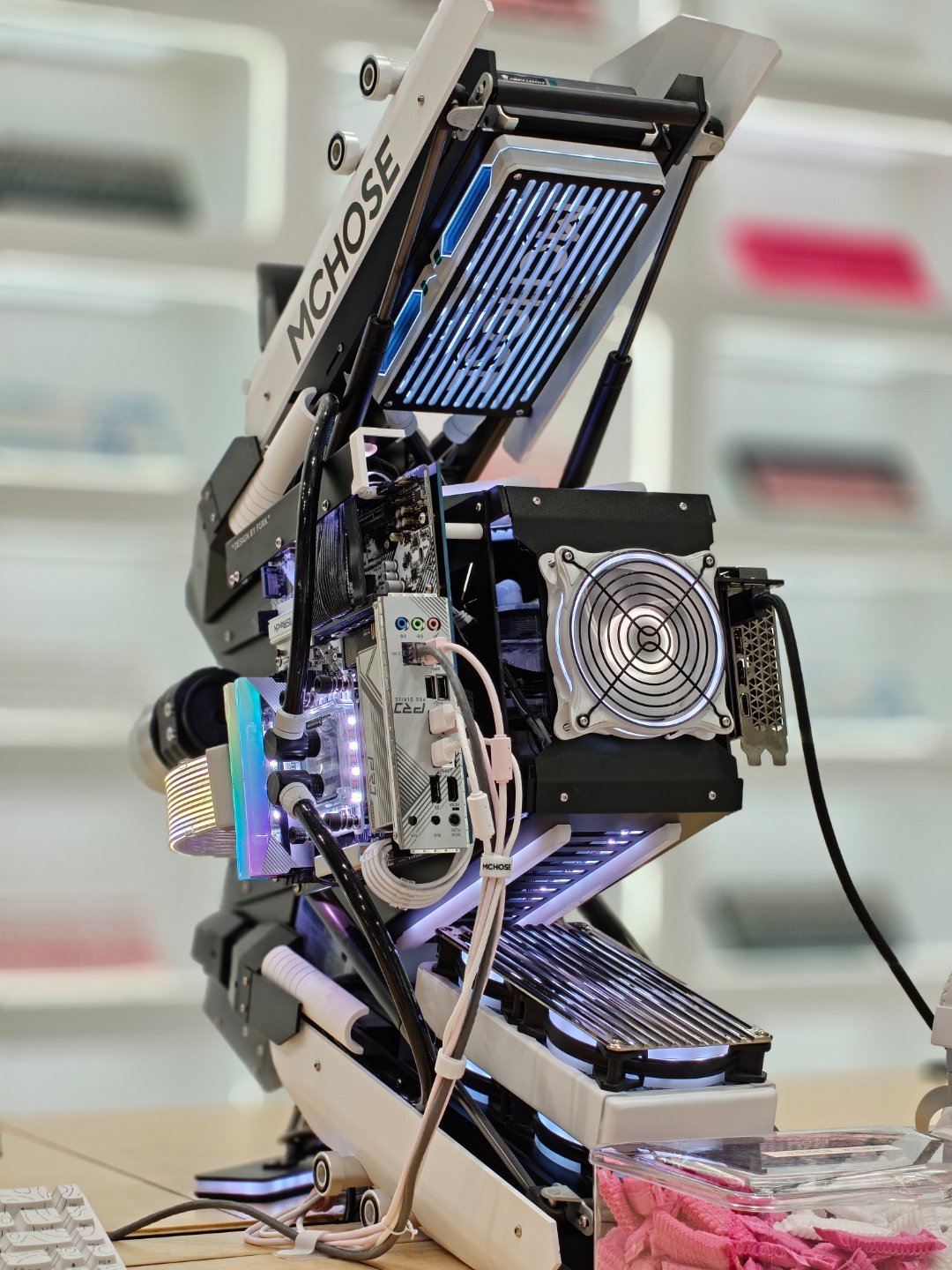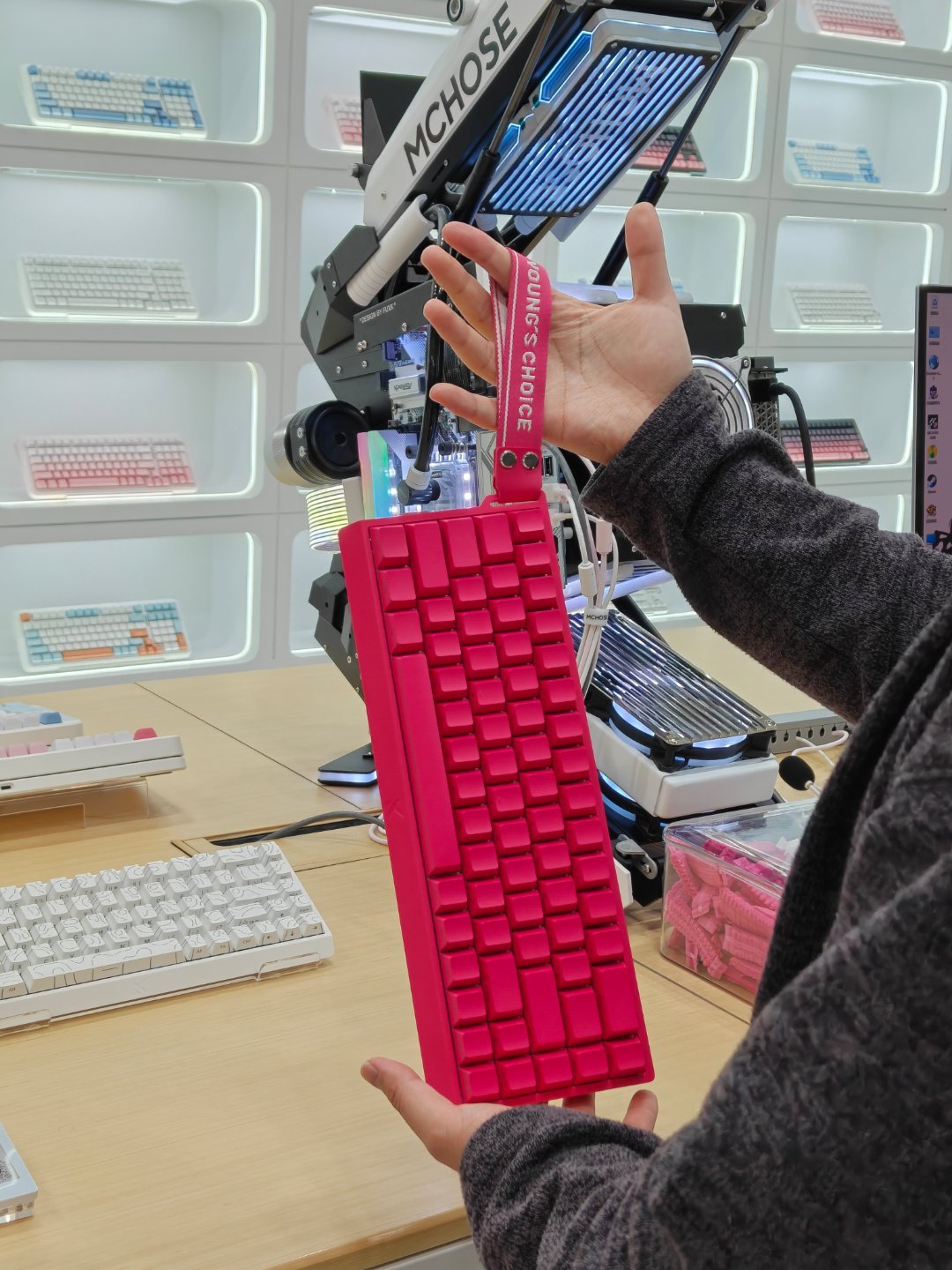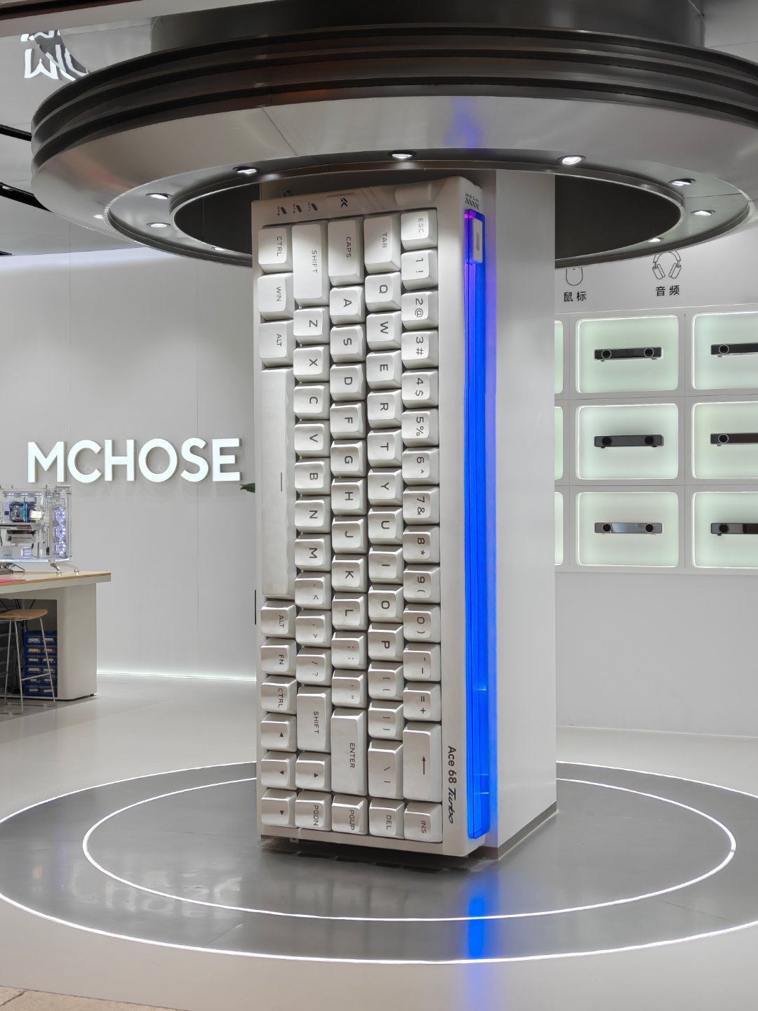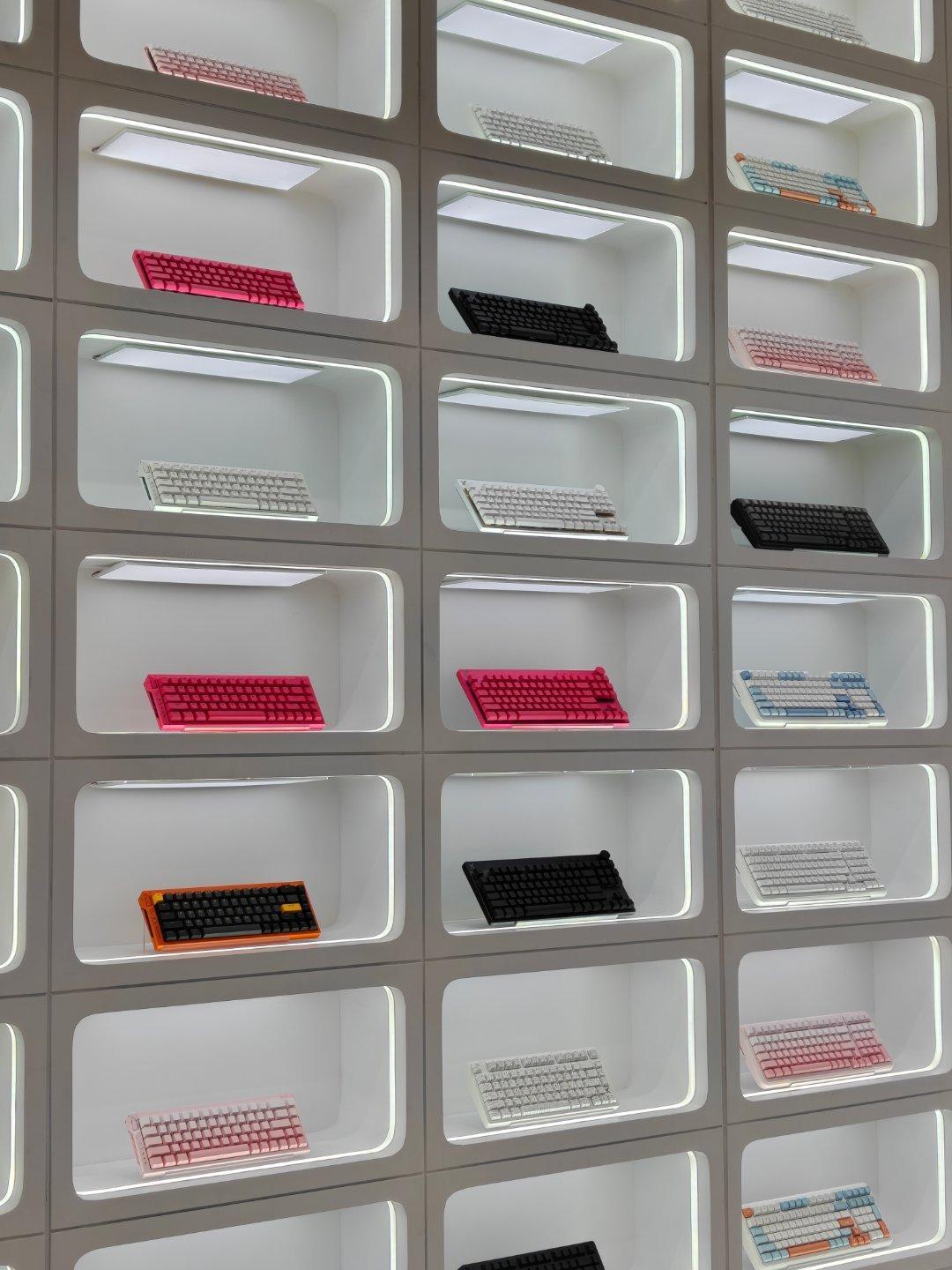 出来逛街,看到一个没听过的外设店,迈从有人知道吗?店里装得挺有意思的,这个机箱我都想拥有,没用过磁轴键盘,给老婆买一把试试水~