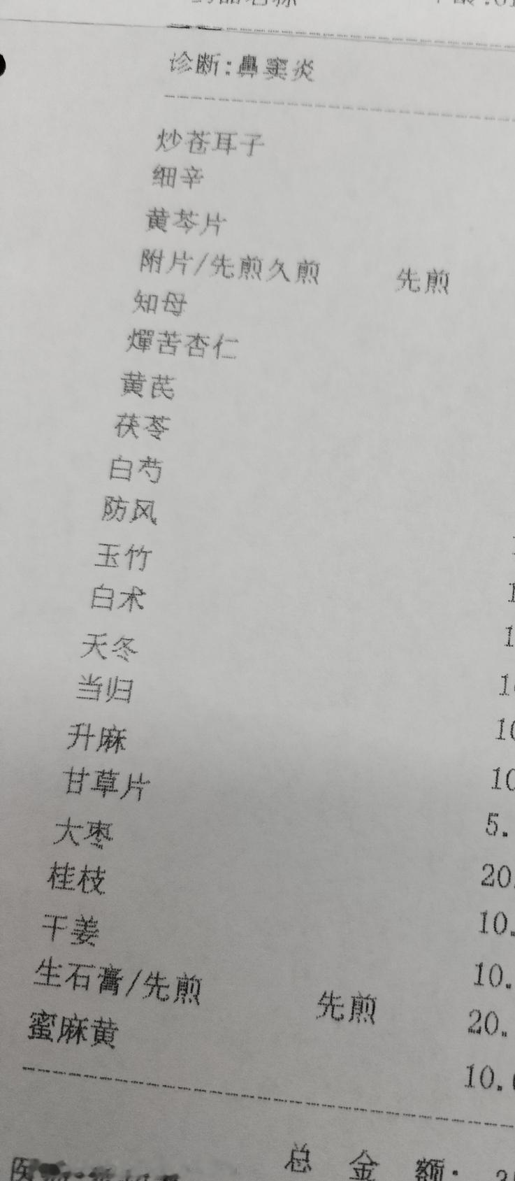 鼻窦炎只有手术能治好吗? 鼻窦炎能根治吗 我的鼻窦炎中医治疗过程之七(还有之八、之九…) 2026年1月5日,我请假休息,头天晚上从长沙回到湘潭,早上在手机上又挂了三甲医院国医馆呼吸科中医雷大夫的号复诊(第四次),挂号费已去年的27元涨至34元。我向雷大夫反馈:最近三天右鼻腔干燥干痛,还有血痂,一直戴着口罩,天气冷至几度,有时还有清涕。左耳入孔处发痒,眼角有眼痂(眼屎?)。 雷大夫说我仍是虚实夹杂症,病情拖了一年,先中药调理2~3个月,才会显效果。我自我感觉,前三次就诊服药后,均有改善。这次他又调整增减了某些中药的重量,开了10剂中药,我手机用医保账户支付了356.43元,我是职工退休医保,报销了43%(门诊300元以内报销60%,门诊报销限额2000元/年)。鼻窦炎 鼻塞鼻窦炎 中医治鼻炎 鼻炎 鼻炎治疗 鼻炎治疗偏方