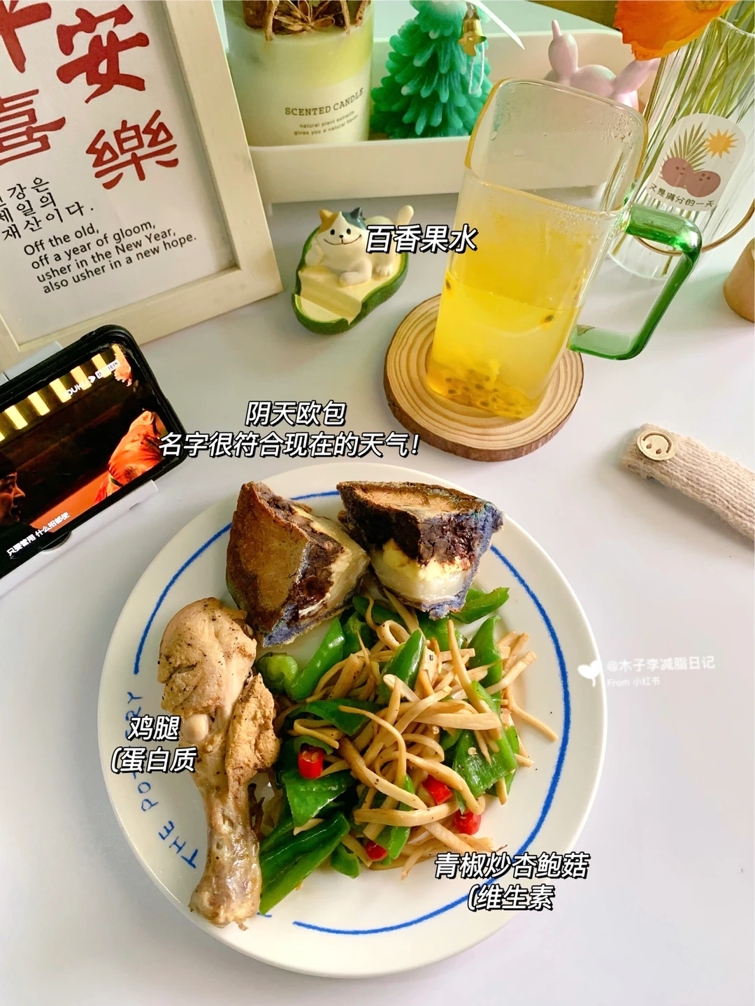 🥙午餐:青椒炒杏鲍菇➕阴天欧包