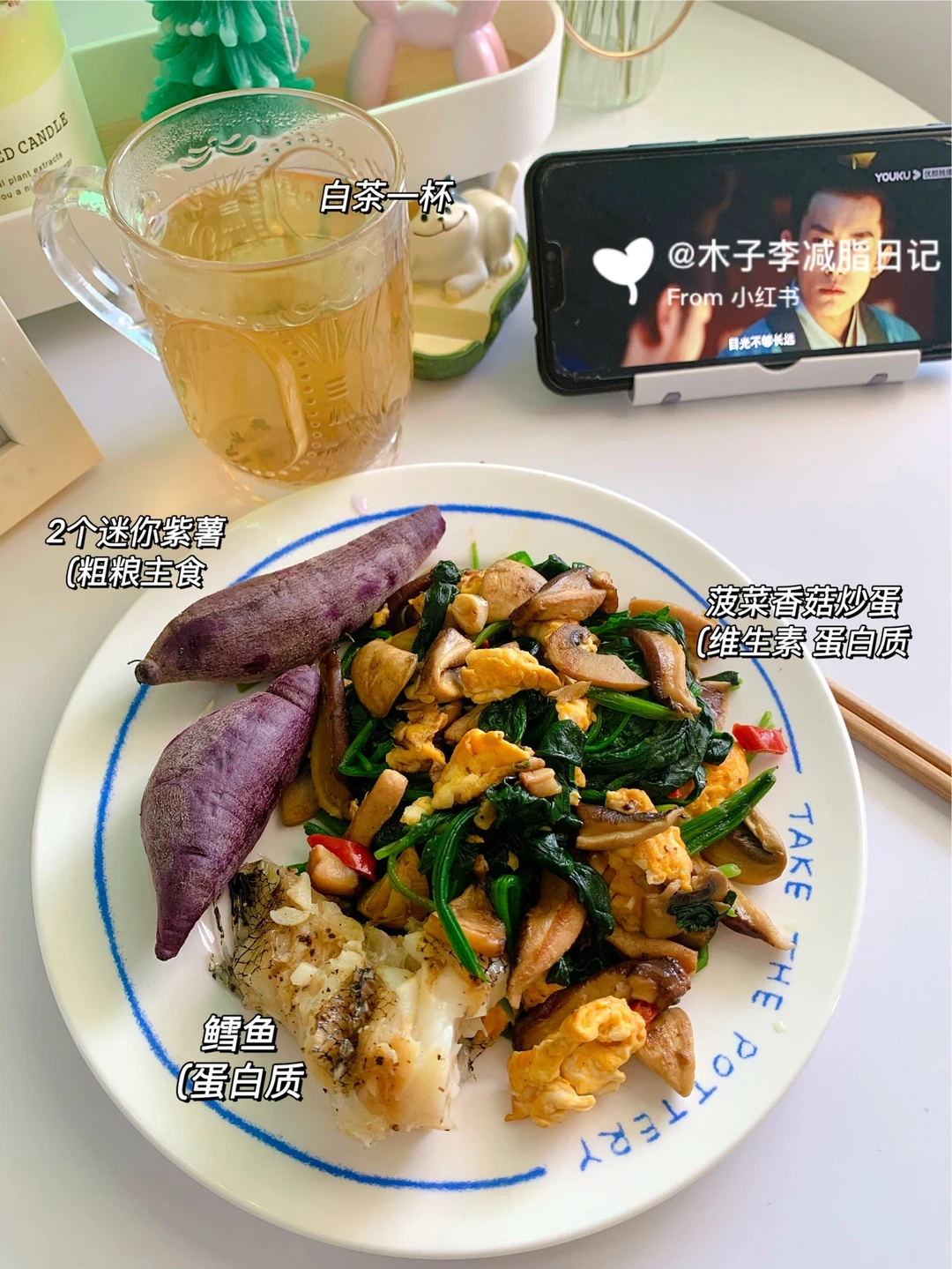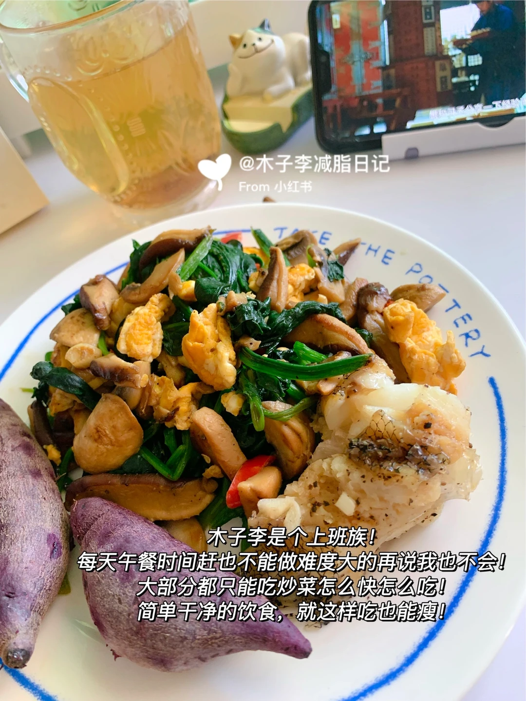 🥙午餐:菠菜香菇炒蛋➕白茶➕紫薯
