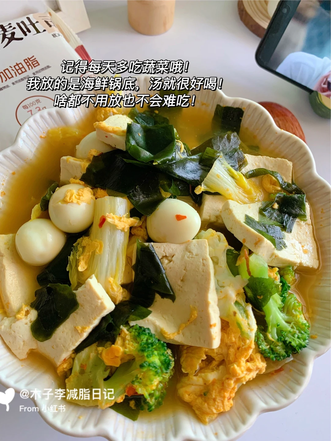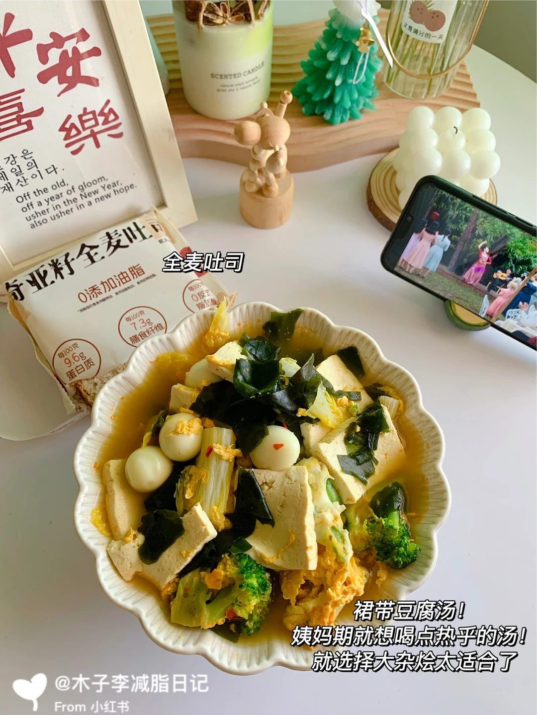 🥙午餐:裙带菜豆腐汤➕奇亚籽面包