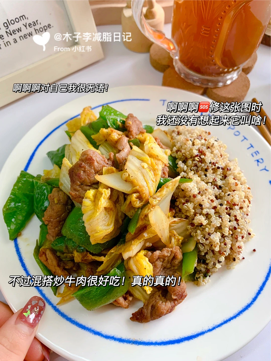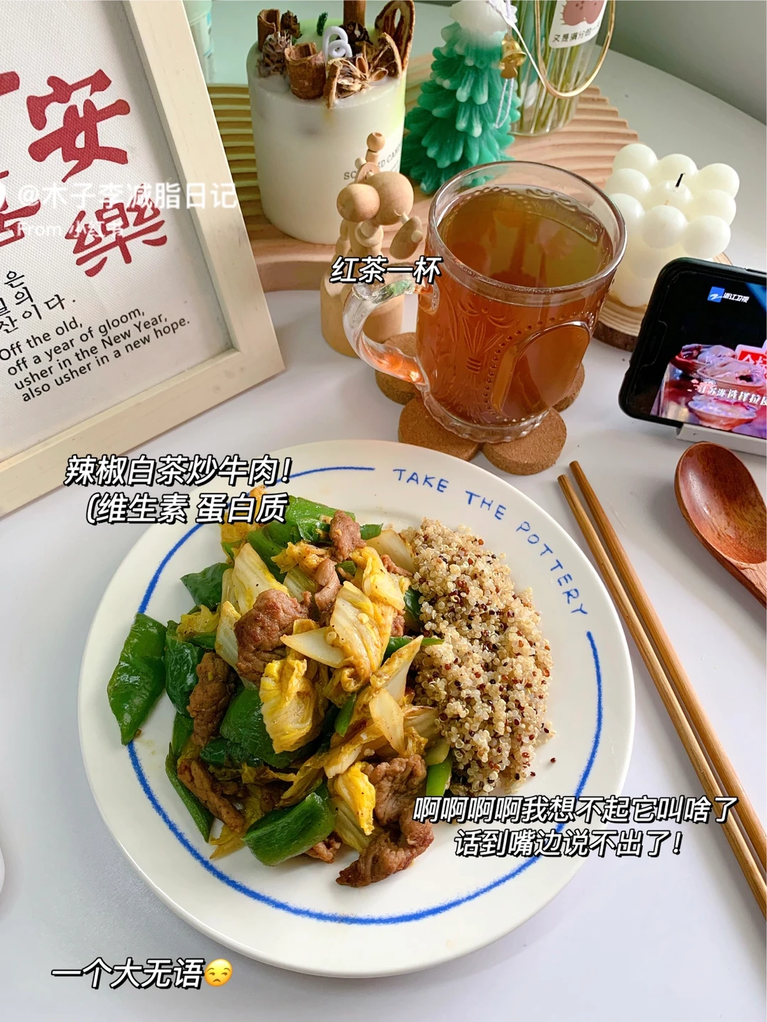 🥙午餐:辣椒白菜炒牛肉➕藜麦饭(想起来了)➕红茶