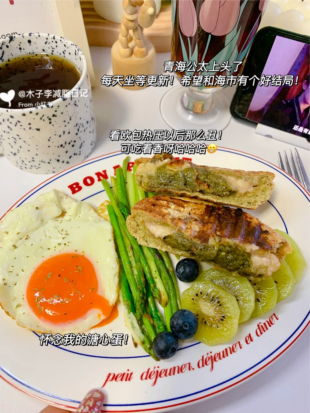🍳早餐:乌龙奶酥➕黑咖啡➕红茶➕猕猴桃➕蓝莓➕煎蛋➕芦笋