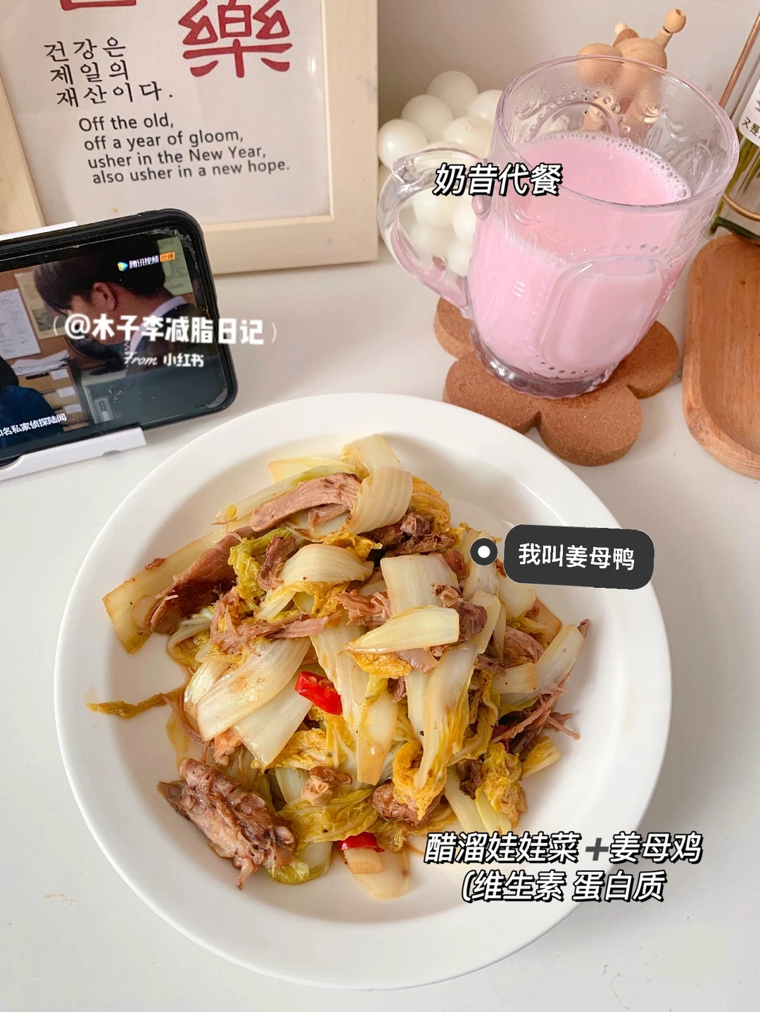 🥙午餐:醋溜娃娃菜➕姜母鸭➕奶昔