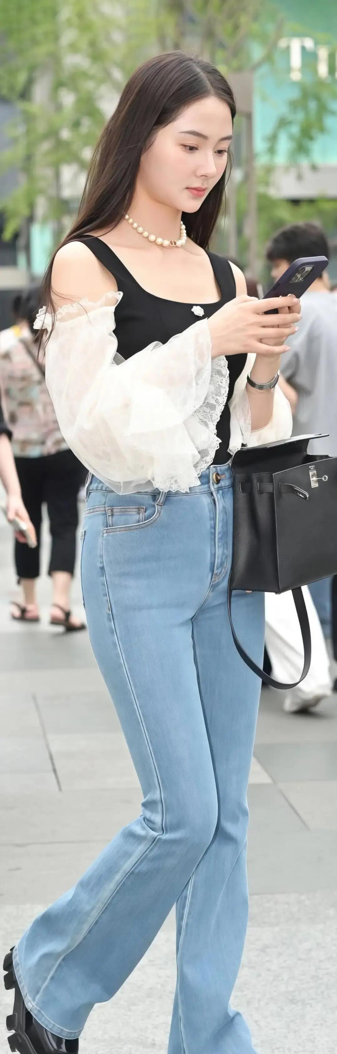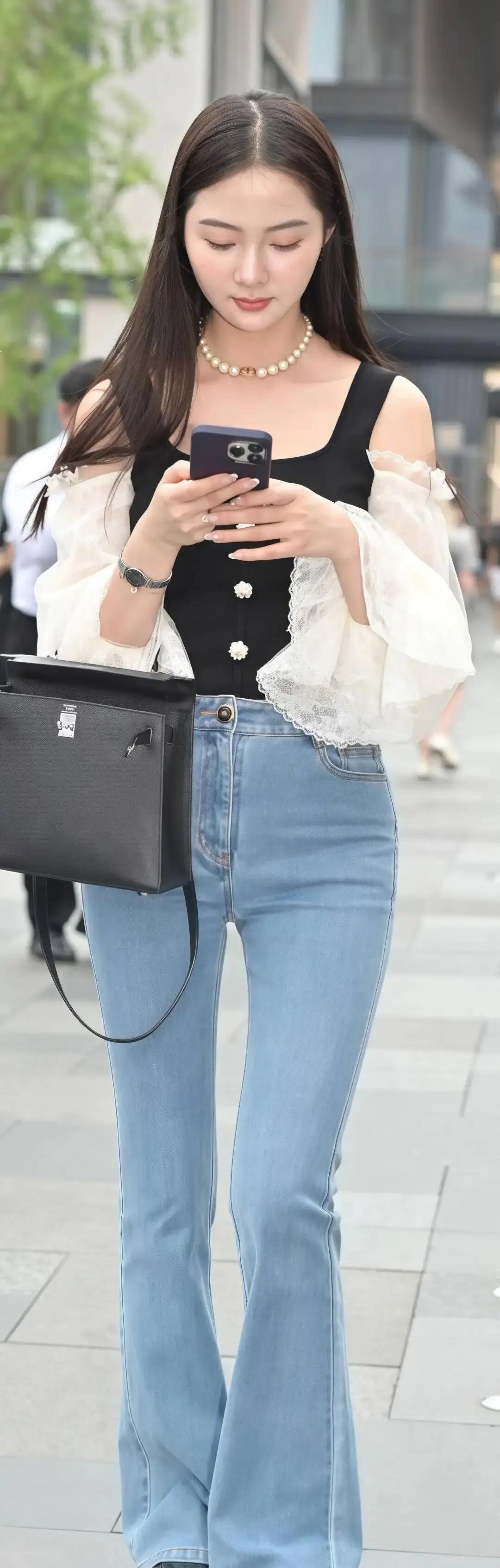 白上衣+黑吊带=1秒显瘦10斤 上班路上被问爆的穿法其实很简单。白泡泡袖盖住拜拜肉,黑吊带直接掐出腰线,两件叠穿比单穿显瘦太多。 牛仔裤别选紧身,浅蓝微喇刚好盖住脚背,腿立马长一截。厚底乐福鞋偷偷加3cm,同事以为你垫了内增高。 这套能直接穿去约会。头发随便抓个半扎,口红选豆沙色,包包背个腋下款就够。 今年秋天满大街都在追甜酷风,但很多人把蕾丝和铆钉硬凑一起,看着像cosplay。真正的甜酷是把少女感藏在细节里,比如袖口的小花边,或者鞋底的一圈黑边。 试了半个月发现,这身最绝的是拍照。站在路灯下,白上衣反光显脸小,牛仔裤的浅蓝把肤色提亮两度。朋友圈发出去,点赞比平时多三倍。