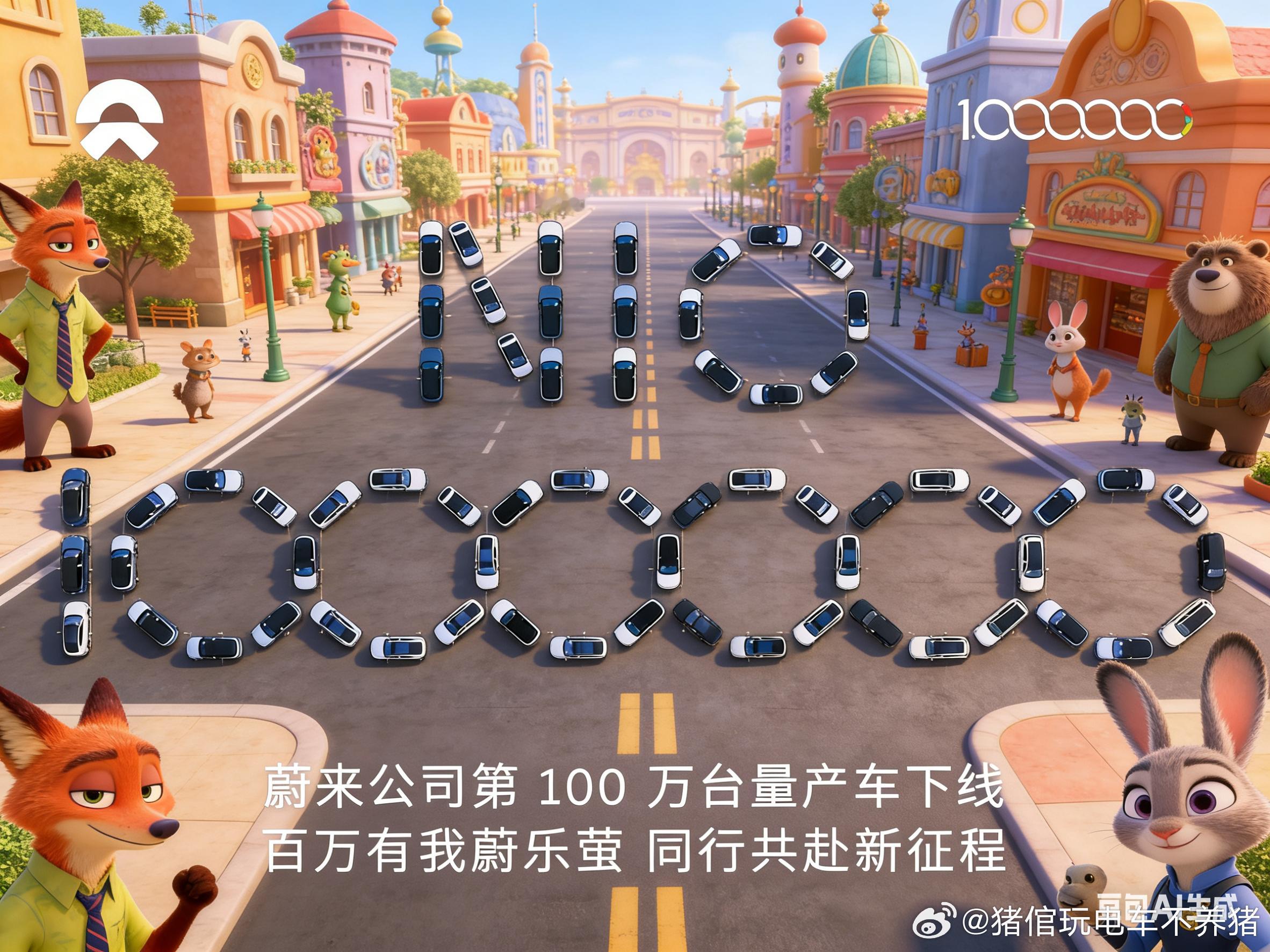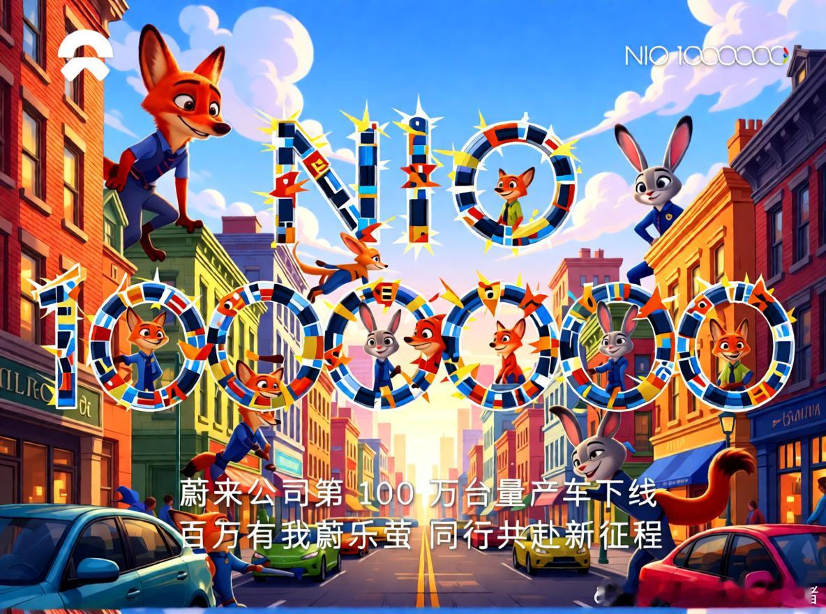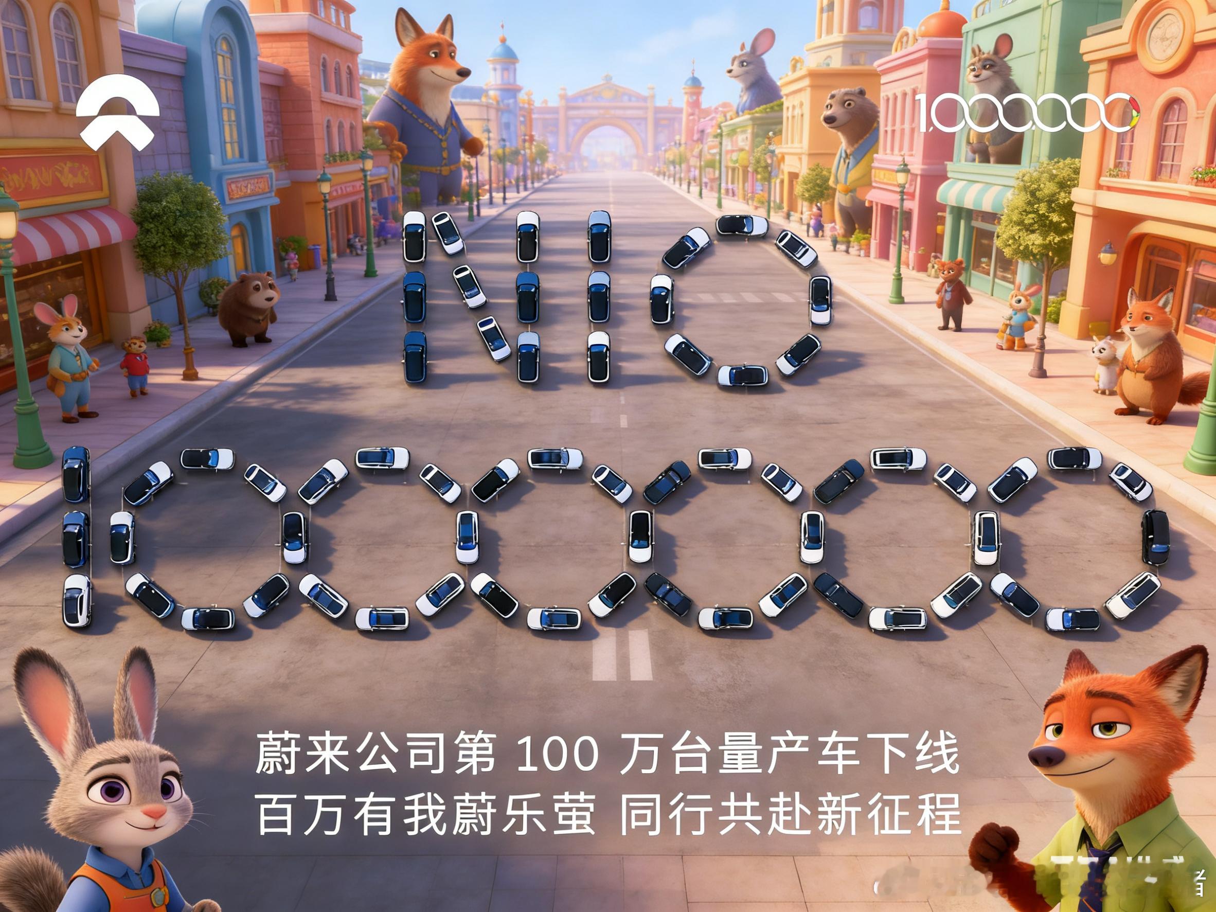 百万有我蔚乐萤 疯狂动物城来凑凑热闹,庆祝蔚来踏进“百万俱乐部”🦊百万有你有我,共同开启新航程😊蔚来蔚来公司第100万台量产车下线