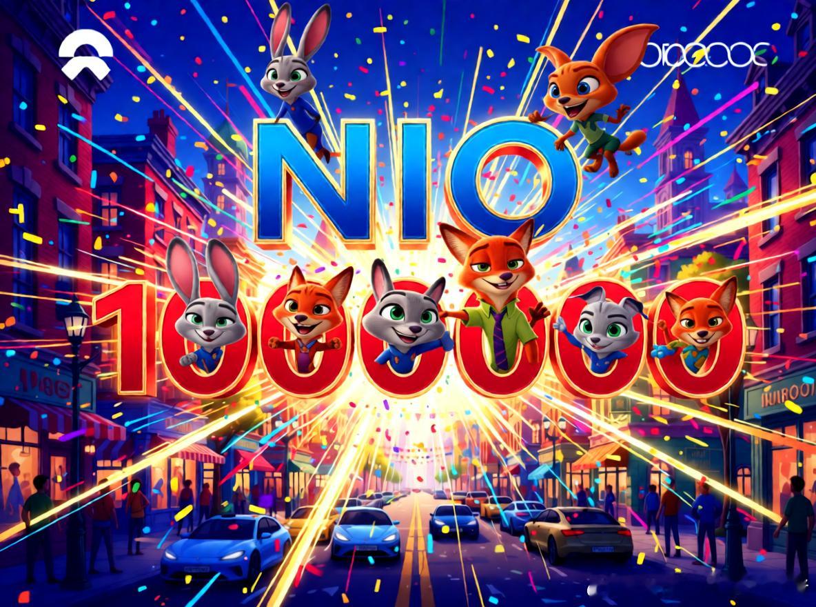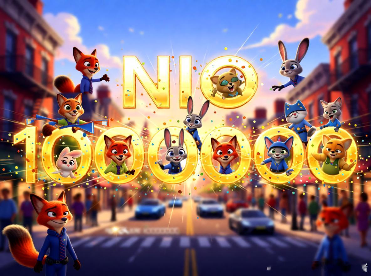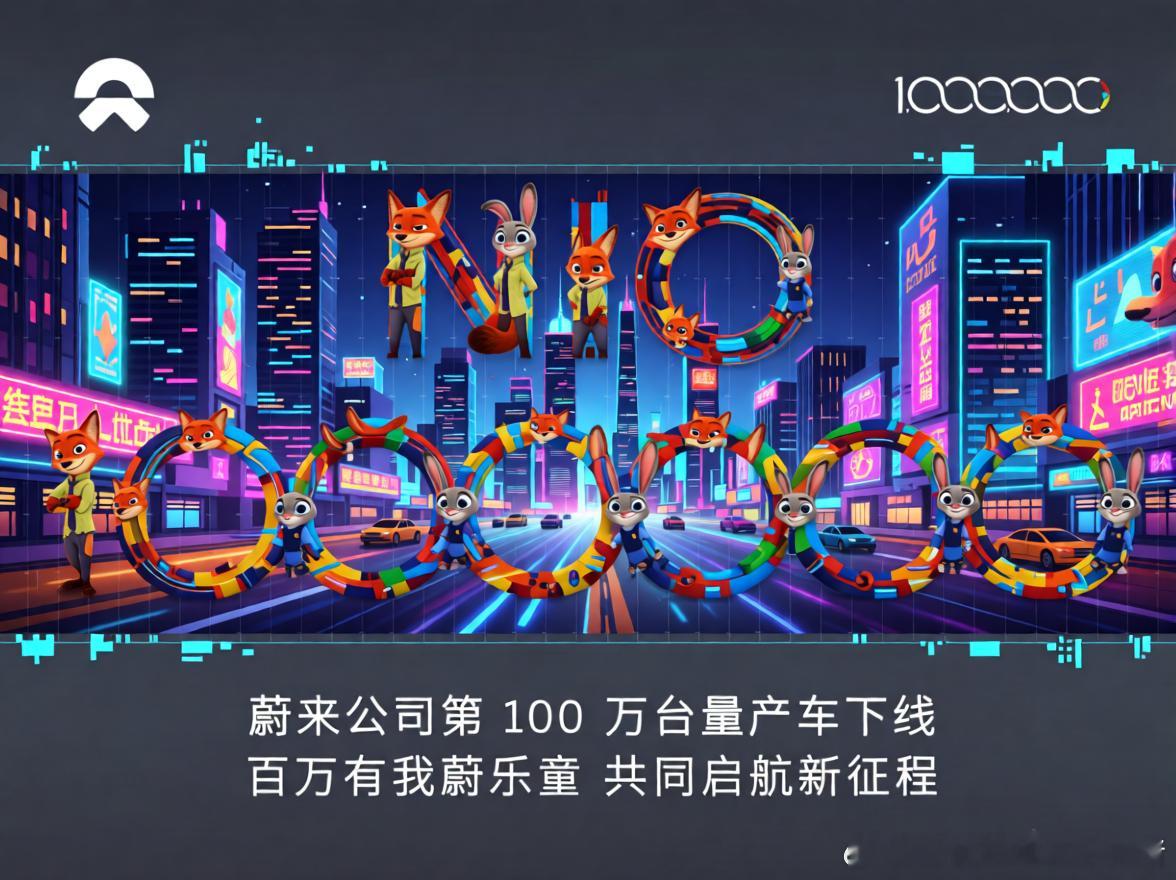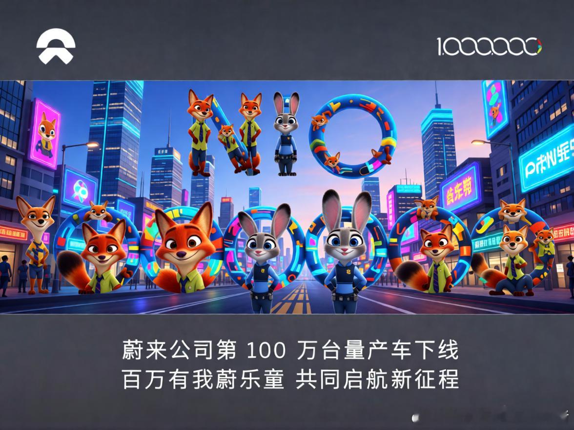 百万有我蔚乐萤 疯狂动物城来凑凑热闹,庆祝蔚来踏进“百万俱乐部”🦊百万有你有我,共同开启新航程😊蔚来蔚来公司第100万台量产车下线