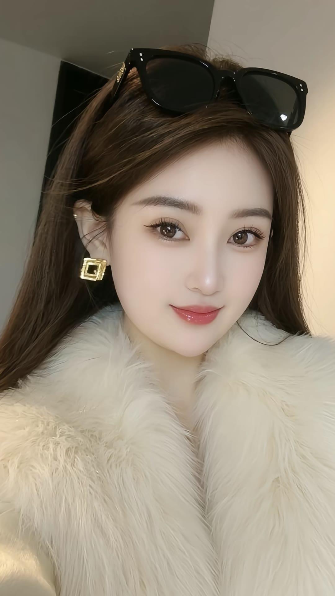 时尚甜美的自拍,白色毛绒外套搭配大墨镜,气质满分!😍💄👑
