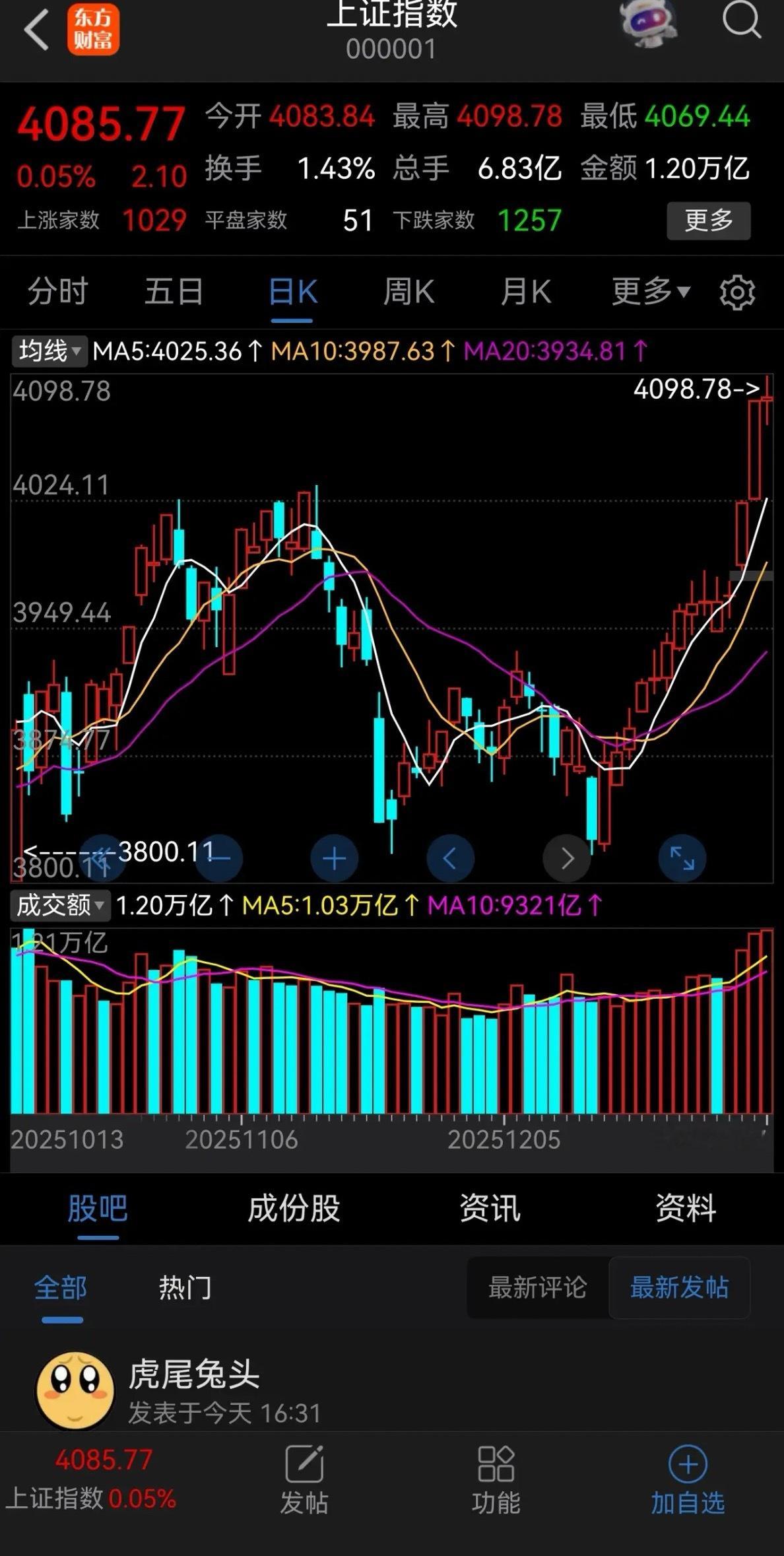 今天上证指数和北证50指数都收出了阳十字星,创业板指数收出了阴十字星。上证指数是领涨指数。 上证指数起动今年的第一浪上升行情,突破了去年的高点4034,前一篇文章中指出过突破没有什么问题,关键是能走多远,因此明天起会确认突破4034的有效性,指数将会以横盘运行的方式让你知道已经突破了。 现在的市场应该是各路大小机构和基金最佳的操作期,一方面业绩预报尚未开始,另一方面春节长期还有一段时间,因此在空档期中是各路资金各显神通的时候,你会看到指数没有大幅上升,黑马个股奔腾,也就是说机会非常多,有一点要认清事实,市场不会普涨,不要浪费上升周期,选择个股大胆做。 后市仍然是参与短线操作。