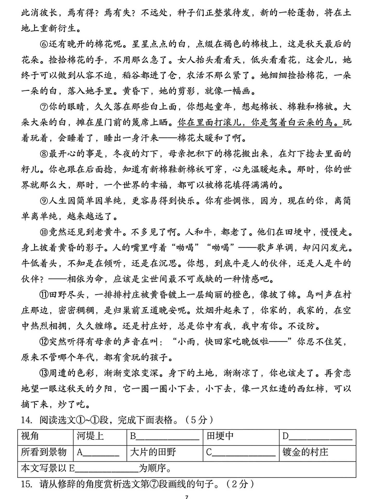 26年七年级上册语文期末考试真题检测卷。七年级上册语文期末考试真题检测...