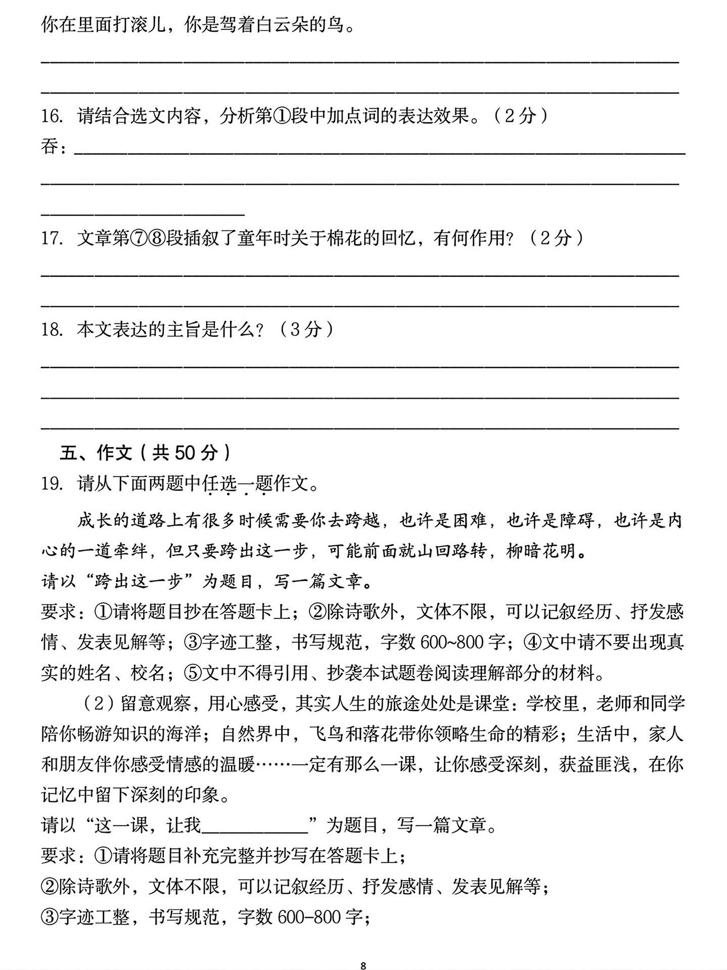 2026年七年级上册语文第一学期期末真题。七年级上册语文期末考试真题试...