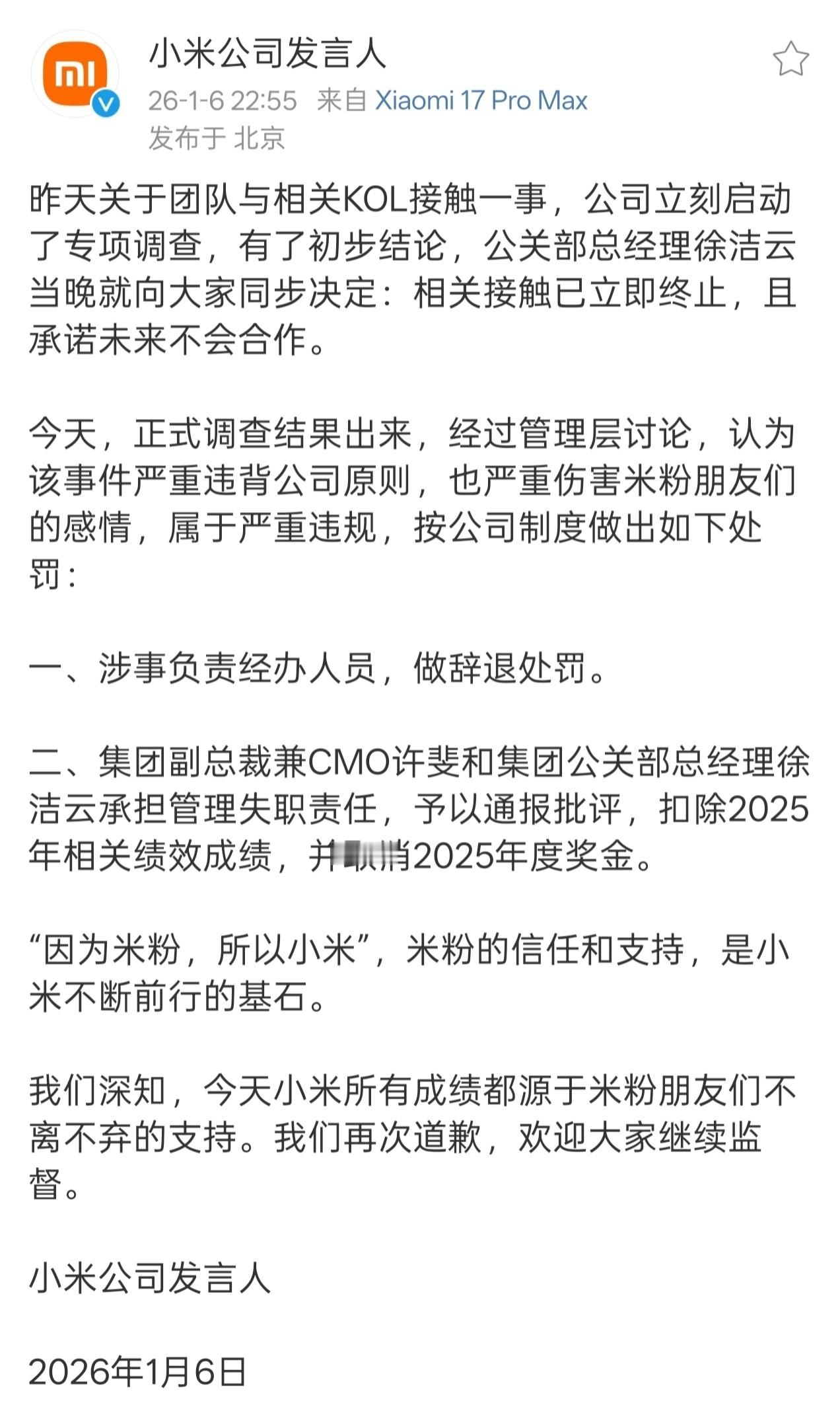 雷军回应KOL事件 雷总亲自过问了这件事,并且亲自做的决定。这个KOL一直在攻击贬低米粉,诅咒米粉,小米要站出来保护米粉和用户,不能容忍和这样的人合作,这是小米的底线。你们怎么看?