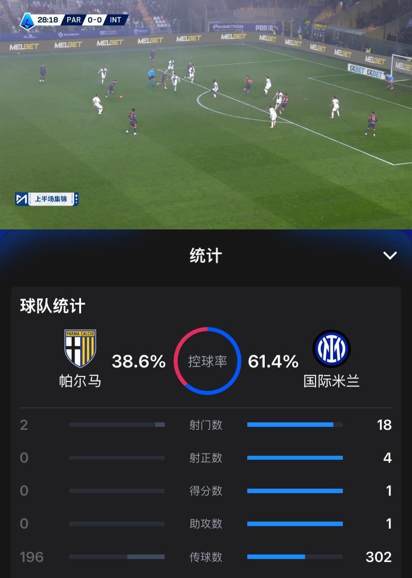 太随性!意甲第19轮国际米兰客场迎战帕尔玛,凭借太子迪马尔科半场尾声阶段的进球,国际米兰1:0暂时领先。 纵观上半场,虽然国际米兰全面占优,但也明显看得出球员们太随意,投入度稍差。大中锋皮奥-埃斯波西托发挥出色,但右路基本上算是废了,恩里克又是度过了一个极其失望的半场,另外赛季初惊艳的苏西奇在上半场同样令人失望。 或许是一周双赛且周末对阵那不勒斯的缘故,球员们心思有所波动,想以较低的代价拿下帕尔玛,以全力迎战那不勒斯。希望在下半场球员们能摒弃这种心态,比赛还是应该一场一场踢,尽全力拿下比赛。