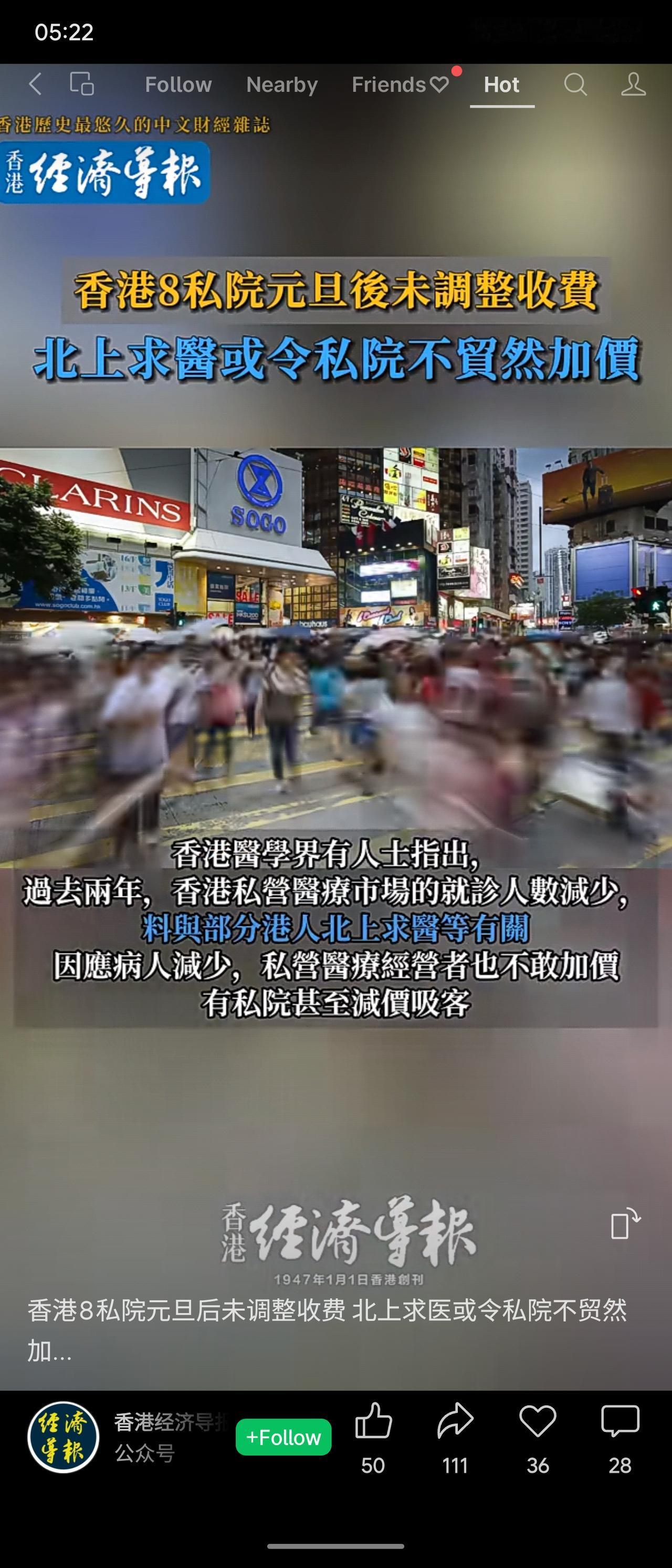 香港公立医院急诊费元旦起从180港元涨至400港元,但至少8家私立医院未同步涨价。业内分析指出,近年因部分港人选择北上求医,导致本地私营医疗市场就诊量下降,竞争加剧使得私家医院不敢轻易加价,甚至有降价吸引顾客的情况。 这一现象反映出香港医疗市场正面临结构性变化。公立医院涨价本可能促使部分病人转向私立医院,但北上求医潮持续分流客源,削弱了私立医院的议价能力。为维持竞争力,私立医院选择不跟进涨价甚至降价,体现了市场供需关系对定价的直接影响。这也说明内地医疗服务水平的提升及跨境就医的便利,正在重塑粤港澳大湾区的医疗消费格局。