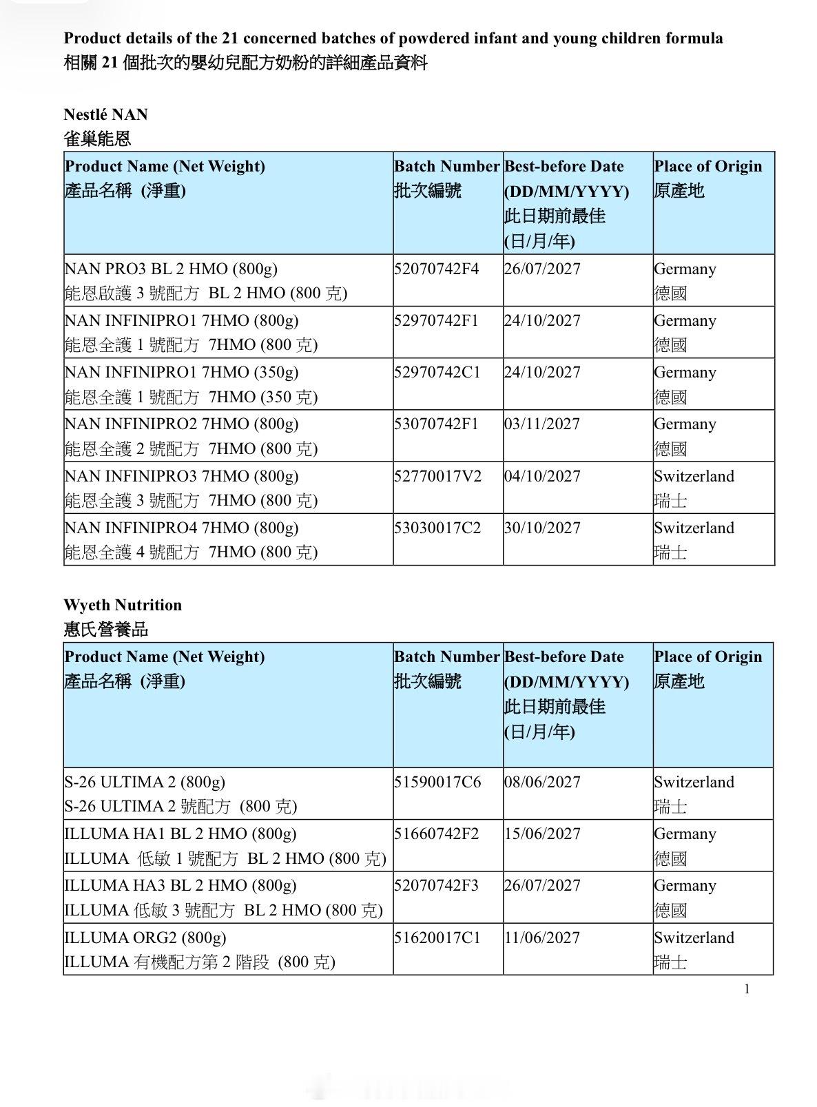 保证香港食物安全香港法律财经 「香港特區政府食物環境衞生署食物安全中心呼籲市民不要食用個別批次的嬰幼兒配方奶粉..」香港 食物環境衞生署食物安全中心(中心)昨日(一月六日)表示,中心持續積極跟進雀巢公司在歐洲部分地區自願預防性回收個別批次的嬰幼兒配方奶粉,因為個別原材料可能存在源自微生物蠟樣芽孢桿菌(Bacillus cereus)的物質。中心早前已即時作出跟進調查,聯絡本地進口商(包括雀巢香港有限公司(雀巢香港))、零售商及有關當局,根據雀巢香港昨日的最新資料,其進口本港的嬰幼兒配方奶粉有21個批次亦可能曾使用相關原材料,為審慎起見,雀巢香港已自願將受影響產品停售和下架,並展開預防性的回收。 相關21個批次的嬰幼兒配方奶粉的詳細產品資料,請參閱附件。 中心發言人說:「雀巢香港現正回收受影響批次產品,市民可於辦公時間致電其熱線2599 8874,查詢有關產品的回收事宜。」 中心早前透過食物事故監測系統,得悉雀巢公司在歐洲自願回收部分批次的雀巢嬰兒配方奶粉,因為懷疑個別產品可能受到蠟樣芽孢桿菌污染。中心得悉事件後,已即時作出跟進,並發布食物事故報表,讓公眾和業界知悉有關事件,並一直積極跟進事件和加強抽檢。 蠟樣芽孢桿菌普遍存在於環境中。如製作或貯存食品的過程欠缺衞生,可引致該菌繁殖。致吐毒素是由一些蠟樣芽孢桿菌菌株在食物中產生的耐熱毒素。進食含過量蠟樣芽孢桿菌或其耐熱毒素的食物,可能引致腸胃不適,例如嘔吐及腹瀉。 發言人呼籲市民不要讓嬰幼兒食用受影響批次的產品,如發覺嬰幼兒食用有關產品後不適,應盡快求醫。業界亦應立即停止使用或出售受影響批次產品。 發言人說:「中心已就事件通知業界及相關部門,並會繼續跟進事件和採取適當行動。跟進工作仍然繼續。」香港执法香港刑法食物餐饮业资本市场财经 ………. 香港