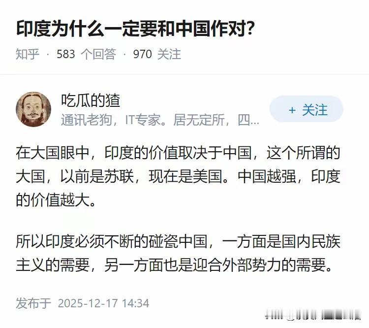 印度现在消停很多了! 印巴空战之前的印度,那真的是飘到天上去了。在各种势力的吹捧下,尤其是美国吹捧下,准备一举击败巴基斯坦军队,从而坐稳南亚霸主地位。当时印度计划把巴基斯坦肢解成四个小国家,一战竟全功。 谁能想到印度输的那么惨?输的什么底气都没了,印度嘴上说要发起第二次进攻,结果还是不敢。 印度输了这局以后,欧美国家彻底对印度失望了。毕竟印度承担一个围堵大国的任务,结果连巴基斯坦都打不赢,还有什么用? 老美直接对印度加税到50%,各种压力都给了,印度一战输掉了冉冉升起的国家地位。这才发现印度一旦发展的不错了,就要对外开战,提升地位。结果越打地位反而低了,因为打不赢。 印度一直想将影响力,扩张到中亚地区和中东地区。但是西进的路上,一直有巴基斯坦在阻挡。而印度就是跨越不过去巴基斯坦的障碍,这就是压力。 印度在南亚很强,但是被堵在南亚,动弹不得,想要发挥更大影响力,暂时没有希望。