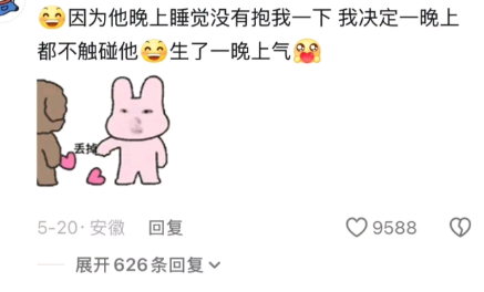 因为他晚上睡觉没有抱我一下,我决定一晚上都不触碰他,生了一晚上气