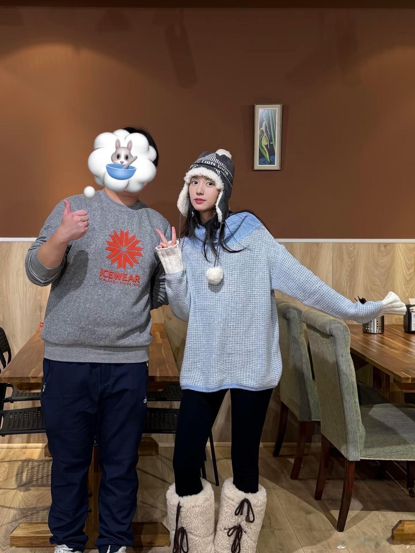 周也1.8冰岛餐厅偶遇路透,冬日甜酷感穿搭周也在冰岛餐厅被偶遇,状态真的很不错哦,浅蓝色针织衫温柔又清新,搭配的毛绒护耳帽和雪地靴,冬日氛围感直接拉满~整套搭配甜酷兼具,贵气又不失少女感~