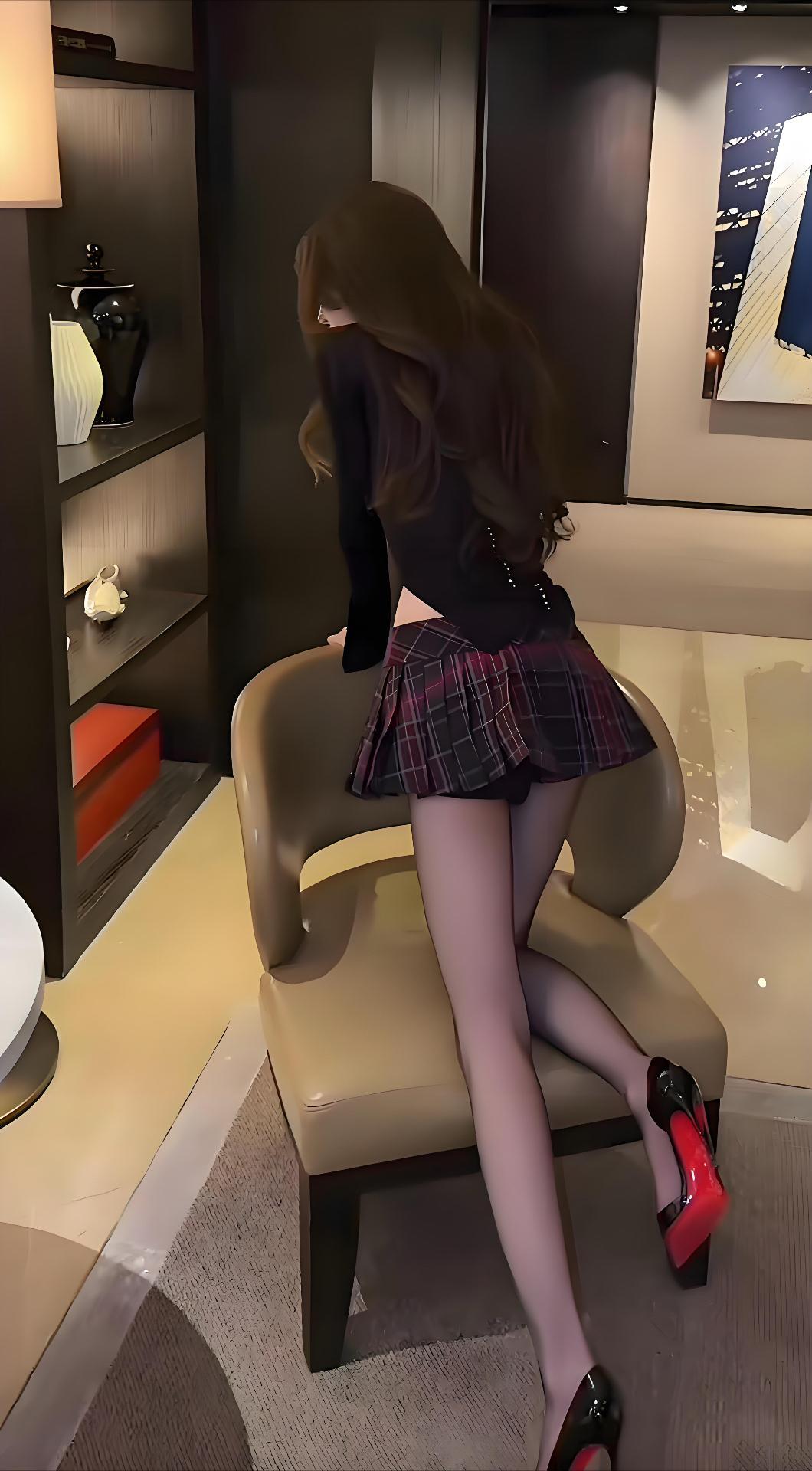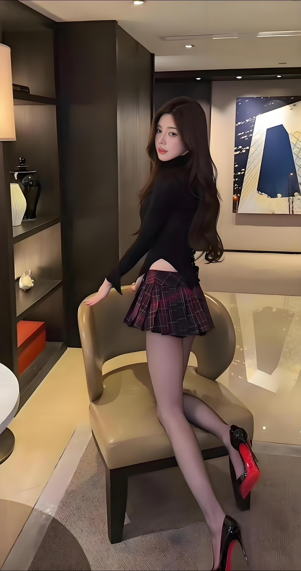 这双红底高跟鞋真是太抢眼了,搭配格子百褶裙,看起来就是迷人