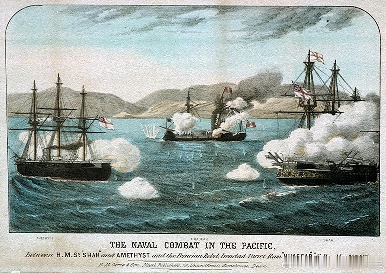 1876年8月14日服役的英国HMS Shah“沙阿”号铁壳护卫舰,1904年12月退役,1926年拆解,它最底一段桅杆被用到了“胜利”号风帆战列舰上。在1877年5月29日帕科查海战中,与秘鲁军舰El Huáscar“瓦斯卡尔”号浅水重炮舰交战。此役中“沙阿”号首次在实战中发射鱼雷,但未对“瓦斯卡尔”号造成损伤。该舰排水量6250吨,装备2门229毫米、16门178毫米、8门127毫米和3门47毫米火炮,4具鱼雷发射管烽火问鼎计划