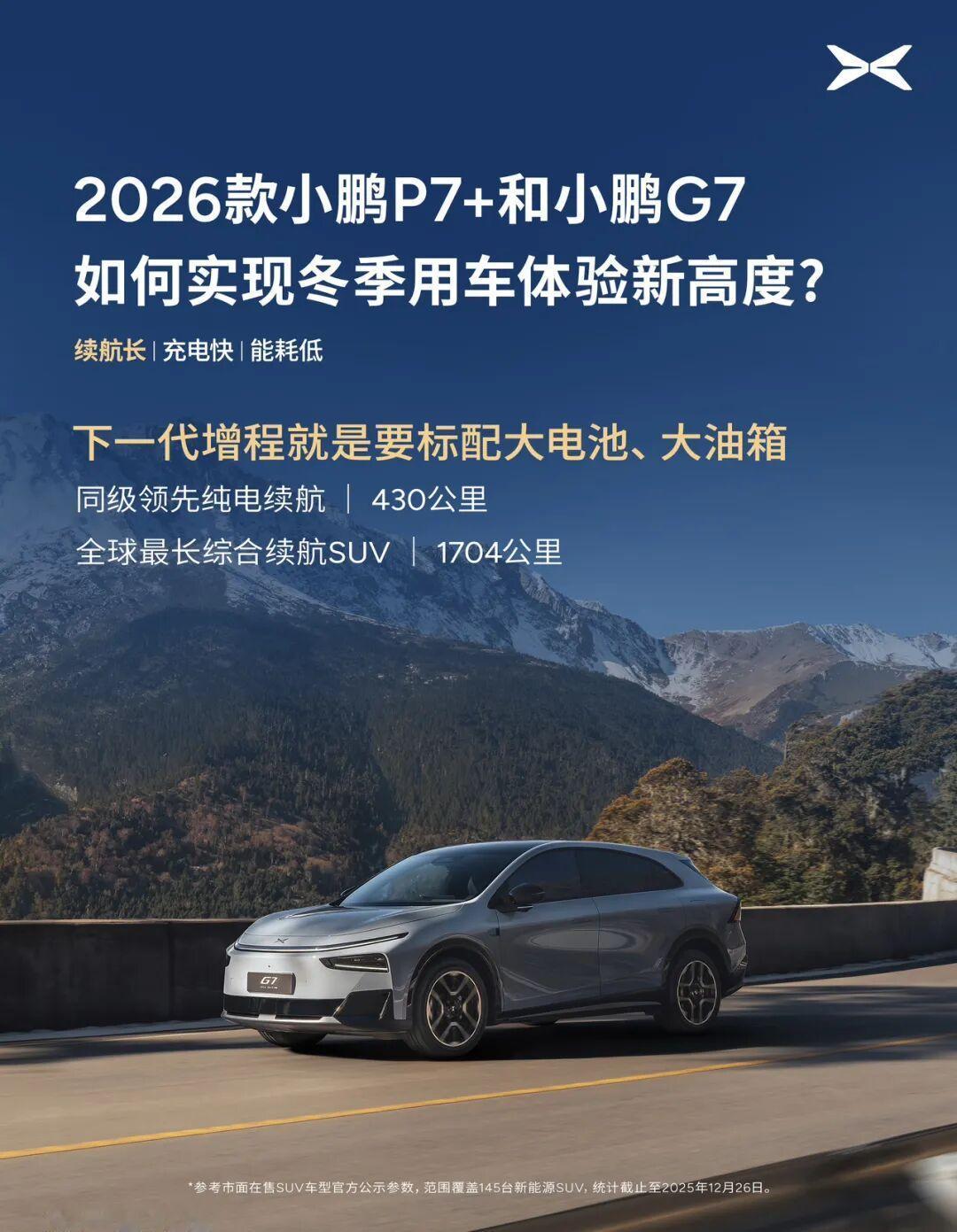 何小鹏参与小鹏G7超级增程与2026款小鹏P7+冬测。此次测试在室外平均- 20℃的极端环境下开展,测试条件严苛,全程不跨温区、保持0高度差,且车辆空调稳定在21℃。实测数据显示,小鹏 G7超级增程综合续航达1108.3公里;2026款小鹏P7+借助导航电池预热功能,热车状态下12 分钟即可完成10%—80%补能。这些极寒环境下的核心性能数据,为北方用户冬季用车提供了关键参考,两款车型后续上市动态都值得关注!【来自懂车帝车友圈】