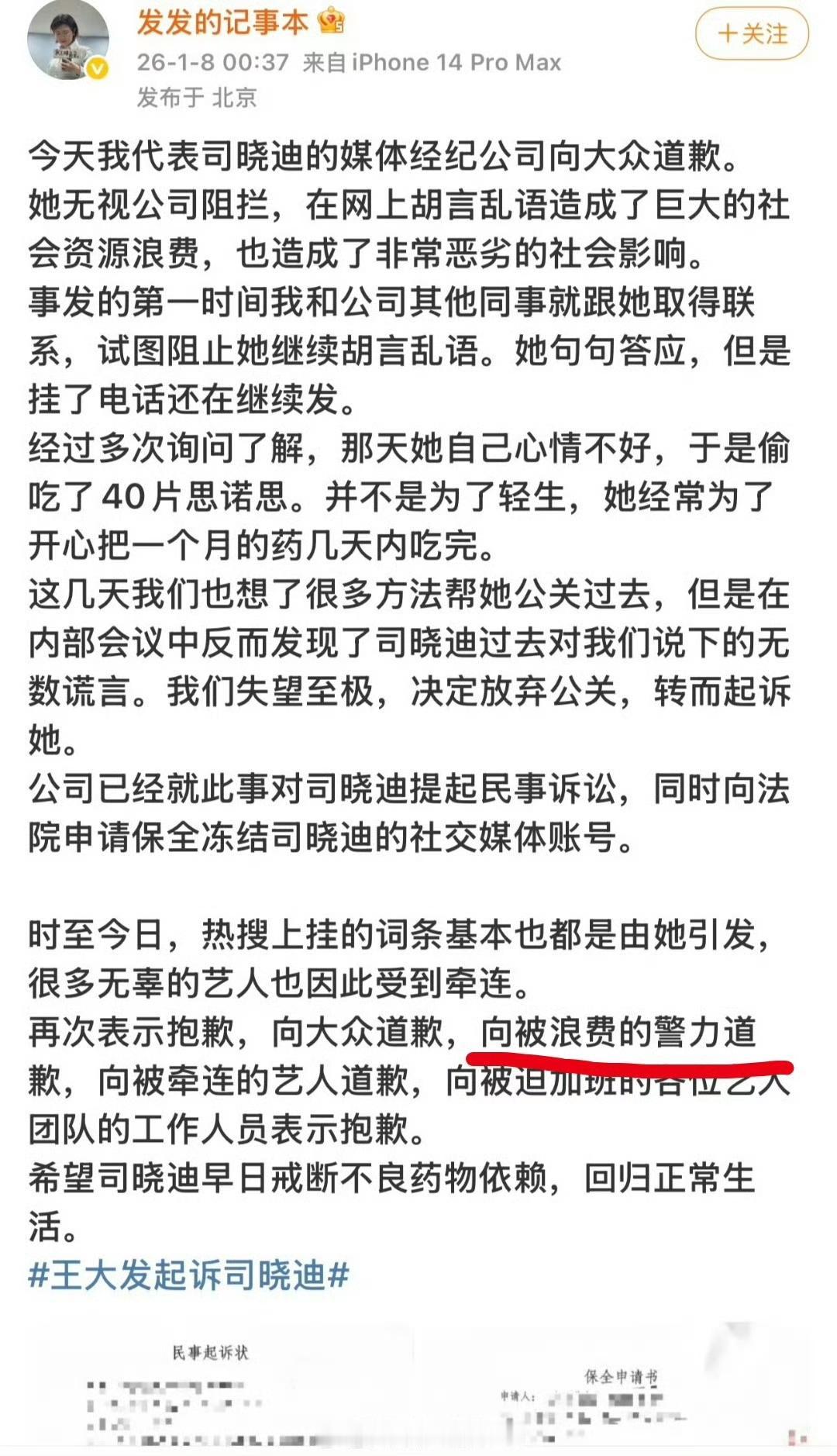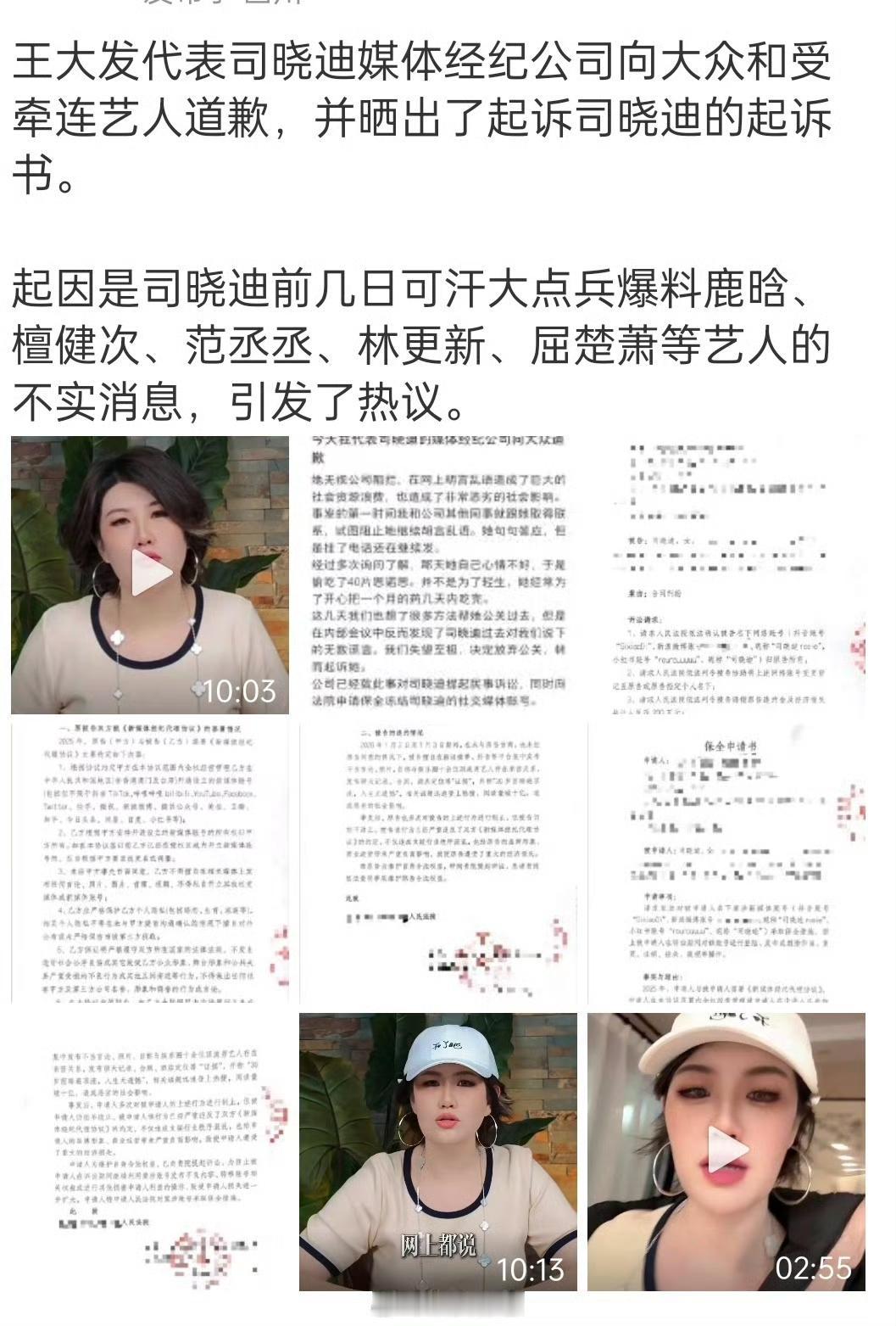 原来司晓迪的老板是王大发啊,就是那个什么料都没有爆出来后来被封的王大发,所以现在是不是承认之前司晓迪的爆料全是假的? 王大发起诉司晓迪了,还说司晓迪爆料的时候心情不好,还偷吃了40片思诺思 !并且还曝光了司晓迪借钱、撒谎、给男同事和老板弟弟发暧昧信息的各种证据! 王大发在澄清视频中提到司晓迪大概率和“被爆料明星”都是认识的,但并没有谈恋爱,甚至说司晓迪倒贴其中一位明星多年未果。 司晓迪之所以会与多位明星相识,是因为司晓迪把自己的身段放得很低,喜欢倒贴他人,像个狗皮膏一样缠着男生,甚至经常往已有对象的男同事身上贴。司晓迪很懂利用自己的外貌优势去吸引别人。 经纪公司发文称:这几天我们也想了很多方法帮她公关过去,但是在内部会议中反而发现了司晓迪过去对我们说下的无数谎言。我们失望至极,决定放弃公关,转而起诉她。公司已经就此事对司晓迪提起民事诉讼,同时向法院申请保全冻结司晓迪的社交媒体账号。 吃瓜一个个往前凑,怎么辟谣就无人在意了?内娱真是烂透了,造谣就用一张嘴,辟谣没人看 !