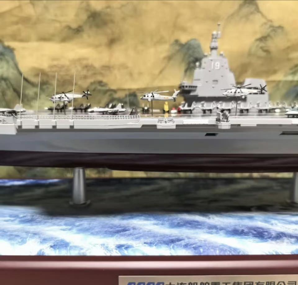 这个打有达利安标签的模型应该不会有太大偏差了吧?!注意这是老4而不是004哦。19号舰是003改进型号,解决了排烟道薰桅杆的问题。奇怪的是为什么不是皮革厂建造?004型已经在达利安建造,这003G又将要在达利安诞生,牛气冲天呀。