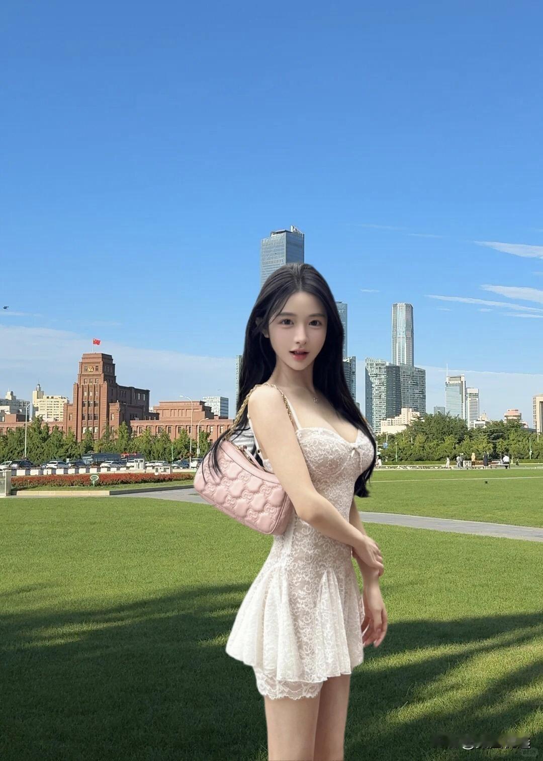 都市绿洲,时尚少女,手提包与城市天际线相映成趣。
