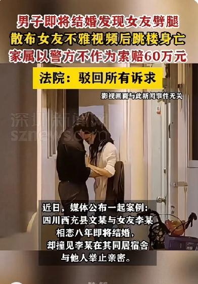 太傻了!男子发现相恋8年并即将结婚的女友出轨后跳楼身亡!为了一个背叛自己的女人而放弃生命太不值得! 近日,网上公布了一个案例,四川西充县的文某与相恋8年的李某即将结婚时,突然发现对象李某出轨了,最终选择跳楼自杀! 案件发生于2022年7月10日下午4时许,文某从成都工作地赶回与李某同居的教师宿舍,推门瞬间撞见李某与另一男子赵某举止亲密。八年感情的信任轰然崩塌,文某情绪失控与赵某发生拉扯,随后取走自己赠予李某的电脑和首饰后离去。巨大的打击让文某陷入极端情绪,他向李某发出威胁,声称要公开其不雅视频,同时向父母和弟弟交代后事,还流露出了强烈的轻生念头。 李某接到威胁后立即报警,文某的弟弟也紧急致电110求助,希望能够阻止哥哥轻生。然而,当晚7时许,李某的不雅视频还是出现在其工作群及多个贴吧,幸得同事提醒,李某及时撤回视频才未造成更广泛传播。另一边,民警接警后迅速展开行动,通过调取监控、沿街搜寻等方式寻找文某,但悲剧终究未能避免。当晚9时许,文某坠楼身亡,一条年轻的生命永远定格在这场情感纠葛中。 痛失爱子的文某父母将悲痛转化为追责,以公安局不作为为由提起诉讼,要求赔偿60万元。但法院经审理认定,民警已积极履行法定职责,不存在拖延履职情形,最终驳回了全部诉求。 李某的背叛固然让人气愤,可是为此而搭上自己的生命简直太不值得!天涯何处无芳草,李某不懂珍惜文某的深情,那是她的损失。文某本可以潇洒转身,开启新的生活,去遇见真正懂他、爱他的人。然而,他却在愤怒与绝望中做出了最错误的选择。 这件事也给我们敲响了警钟。在爱情里,我们都该保持理智和清醒。当遭遇背叛时,要明白这只是人生中的一个挫折,而不是世界末日。我们还有家人、朋友,还有无数美好的未来等待去探索。