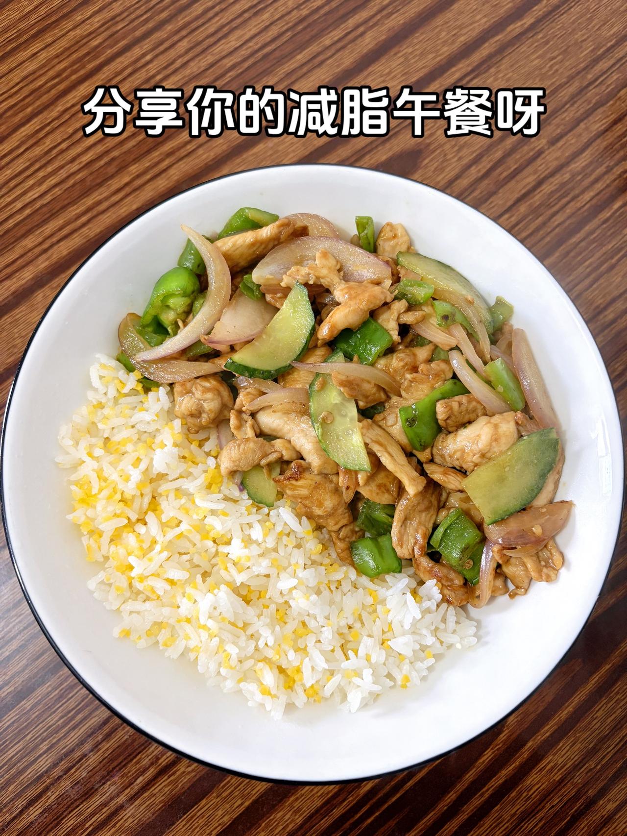 最好的减脂餐是家常菜,目标103斤,加油 今日减脂午餐:青椒洋葱炒鸡胸肉+玉米渣
