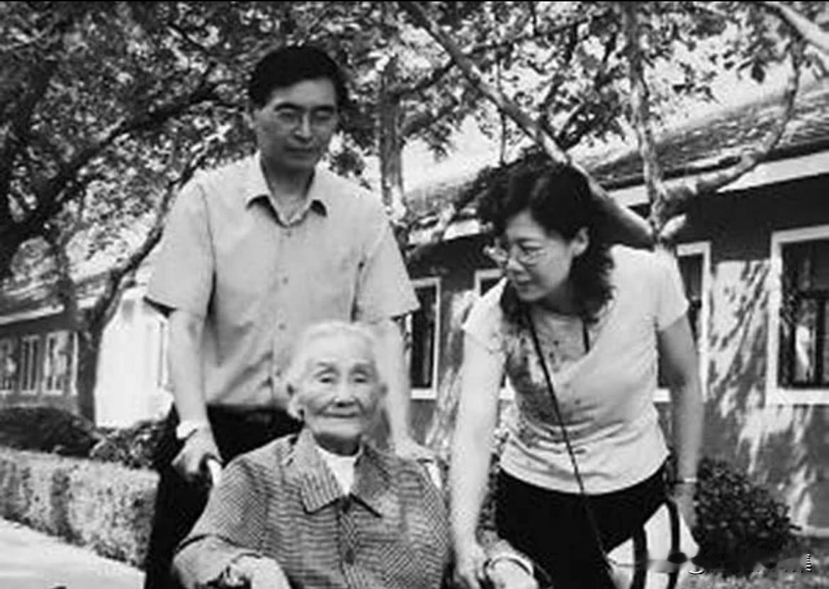 2006年,谢飞和养子谢冰夫妇合影。谢飞(1913-2013)是女红军,与刘少奇离婚后(1941年),终身未再婚。建国后,谢飞收养了谢冰。当时谢飞已40多岁,因工作繁忙且无亲生子女,经组织同意或亲友介绍收养了谢冰。2000年谢飞离休后,谢冰承担起照顾母亲的责任。2012年谢飞因褥疮住院后,谢冰日夜守护。2013年2月14日谢飞去世时,谢冰悲痛万分,遗憾未能见母亲最后一面。