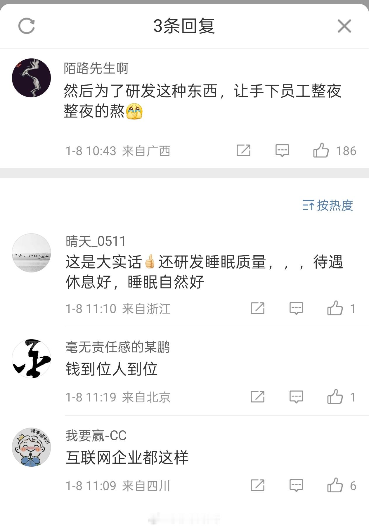 王腾从小米离开后成立新公司 大帝之资,这类产品确实有市场,刚刚居然网友评论确实很犀利。比如网友都在想,是不是在小米加班太多才想做睡眠产品,把个人经历转化为创业方向,更像是从痛苦中寻找解决方案。另外应该不会公司员工熬夜做睡眠产品吧?这确实是许多健康类创业公司容易面临的质疑,如果一家提倡“好好睡觉”的公司,内部却推行“996”或熬班文化,的确会显得讽刺。