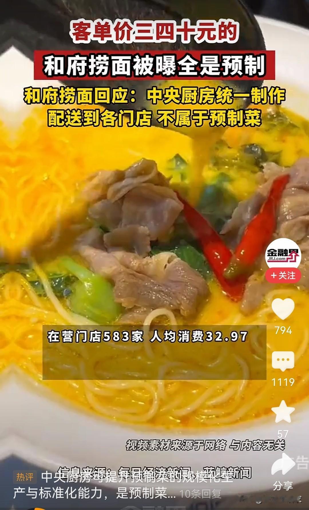 和府捞面冤吗 40一碗还亏,单看这客单价在我这四线小城都没有品尝的机会,管理、宣传成本就这么高了吗。 由中央厨房统一加工成配配料包配送到门店。餐厅只负责现煮面条面,之后将调料包往里一倒就可以了,完全没有爆炒的锅气。 想想居然三年能赔7个亿。 那些现炒现做还能盈利,总感觉哪里不对[捂脸]