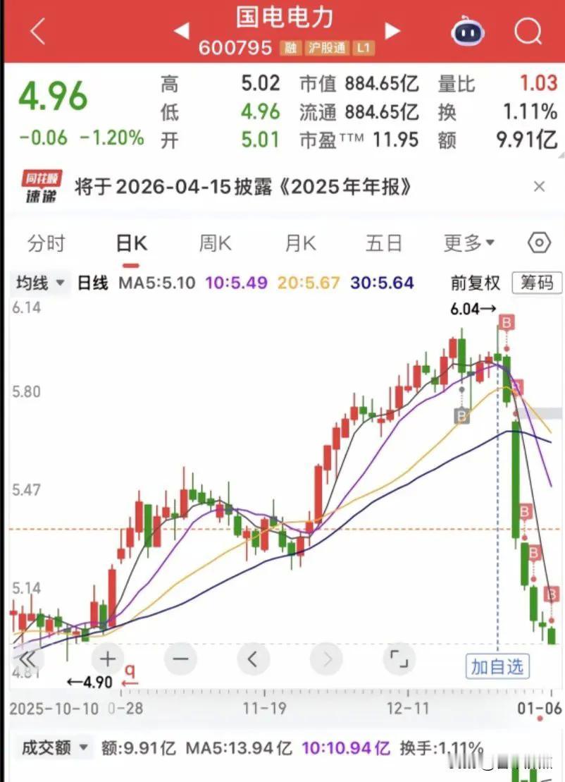 国电电力暴跌真相:谁在接盘?散户为何总在亏钱? 股市这地方,真不是人待的。你刚觉得抄到底了,结果发现底下还有十八层。国电电力这票,多少人眼巴巴瞅着它涨了几个月,均线一直稳稳托着往上走,那阵势,像是铁了心要带人吃肉。可谁能想到,风向说变就变,一天一个大阴线,成交量哗哗地往上飙,这不是普通回调,是实打实在出货。 那天量能放得吓人,分时图跟跳水似的,一根大阴线直接砸穿短期支撑。老手一看就知道不对劲,这哪是调整,分明是有大资金在跑。可偏偏有人不信邪,看着价格跌了就觉得便宜,赶紧往下加仓,想着摊低成本,后面肯定能拉回来。结果呢?第二天继续往下砸,又是放量下跌,根本没承接盘,跟自由落体一样,谁接谁套。 最要命的是,这些人之前几个月看着股价慢悠悠往上涨,一点动静没有,等到破了均线、技术形态全毁了,反倒开始重仓杀入。这就叫典型的“只买跌,不买涨”。心理上总觉得跌多了就是机会,涨多了就是风险,完全反着来。主力资金可不傻,人家早就在高位慢慢撤退,等你反应过来,盘面已经一片狼藉。 你说这算不算接飞刀?明眼人都知道,放量下跌的第一天就是逃跑信号。但总有人心存侥幸,觉得还能搏一搏。加仓的时候手不抖吗?看着账户一天缩水几个点,心里没数?市场从不会因为你的坚持就给你奖励,反而常常惩罚那些不肯认错的人。 我还记得前年有个朋友,也是这样被套在某只电力股里。他跟我说:“我都补了三轮了,差不多回本了吧?”结果呢?那票一路阴跌半年,最后割在最低点。这种事见得多了,慢慢就懂了——散户亏钱,往往不是因为不懂技术,而是心态出了问题。总想抄底,总想捡便宜,最后反而被当便宜卖了。 国电电力这次的走势,其实就是一个活生生的例子。涨的时候你不信,跌的时候你冲进去,这不是给主力抬轿子是什么?特别是连续两天放量杀跌,根本不是洗盘能解释的。洗盘会缩量,会反复震荡,哪有这样干脆利落往下砸的? 更讽刺的是,现在还有人在论坛里说“估值低”“电力股稳健”“长期拿着没问题”。问题是,市场短期是投票机,情绪上来谁管你基本面?你拿十年的逻辑,挡不住人家三天的抛压。等你熬不住割了,人家再慢慢买回来,一轮收割完成。 所以你看,股市里最难的从来不是选股,而是管住自己的手和心。尤其是在那种看似“便宜”的时刻,越是诱惑,越要小心。有时候,你以为抓住了黄金,其实只是抓住了一把沙。
