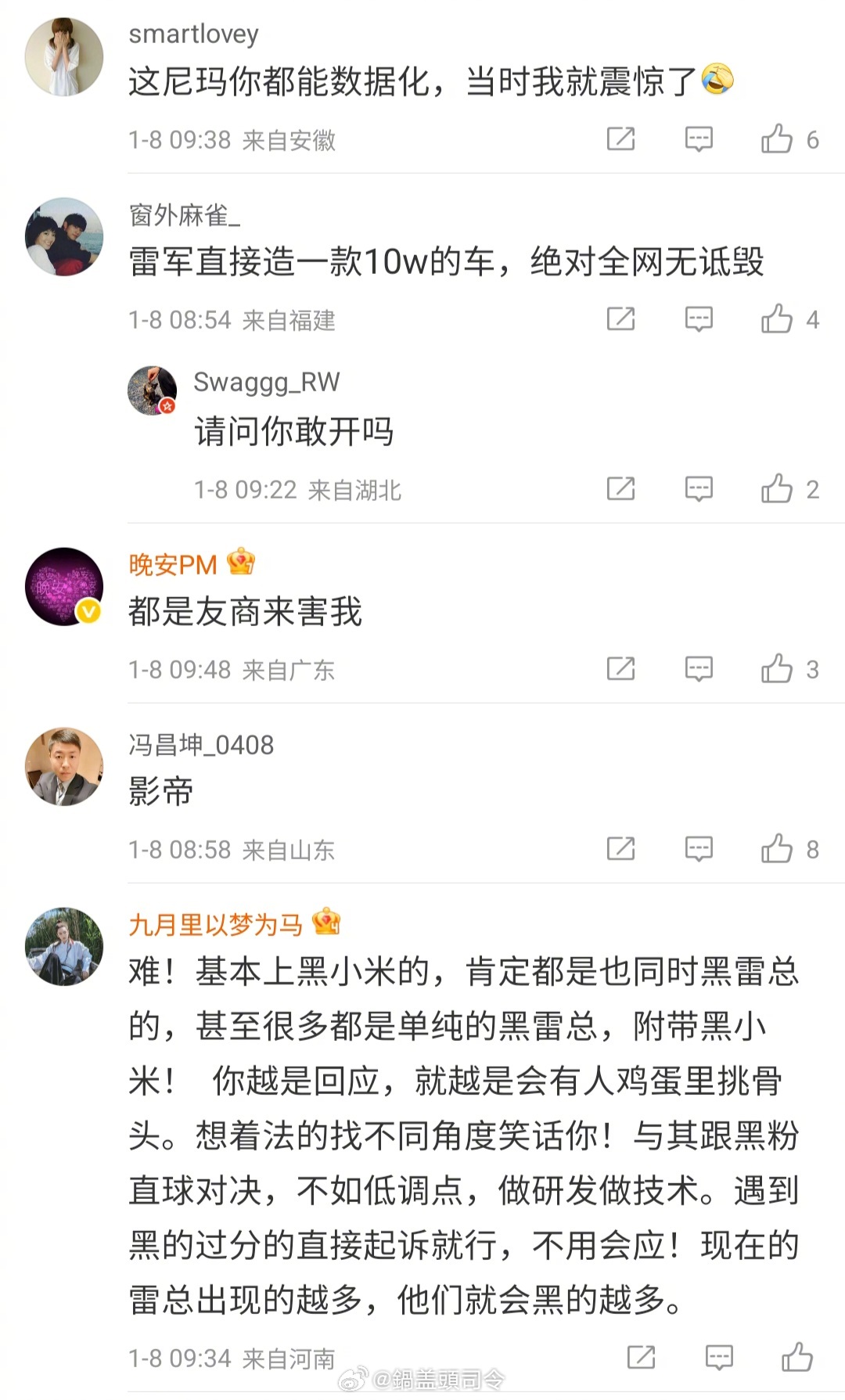 #雷军说花2个月下决心回应诋毁#翻了一下评论,在思考一个问题。为什么越回应大家调侃质疑越多了?还有米粉确实是小米的基础,但经营是不是要面向全体消费者,非发烧米粉的消费者应该数量更加庞大吧,如果让这些人变得质疑了,是不是反而对品牌口碑和市场占有有损伤?还有一个这么大的企业,到底要不要一把手承担这么大的压力?是不是凡事都要走向前台?很多企业在交接班时候都容易出现问题,如果雷总退休,那后面策略如何快速调整或者重新搭建?毕竟企业不能说干一段时间就不干了,都想做成百年。