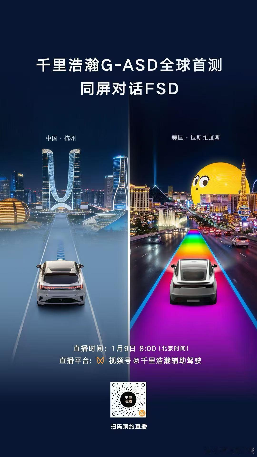 跨太平洋同屏对话!千里浩瀚G-ASD VS FSD北京时间1月9日8:00全球首测CES2026 千里浩瀚G-ASD汽车资讯千里浩瀚