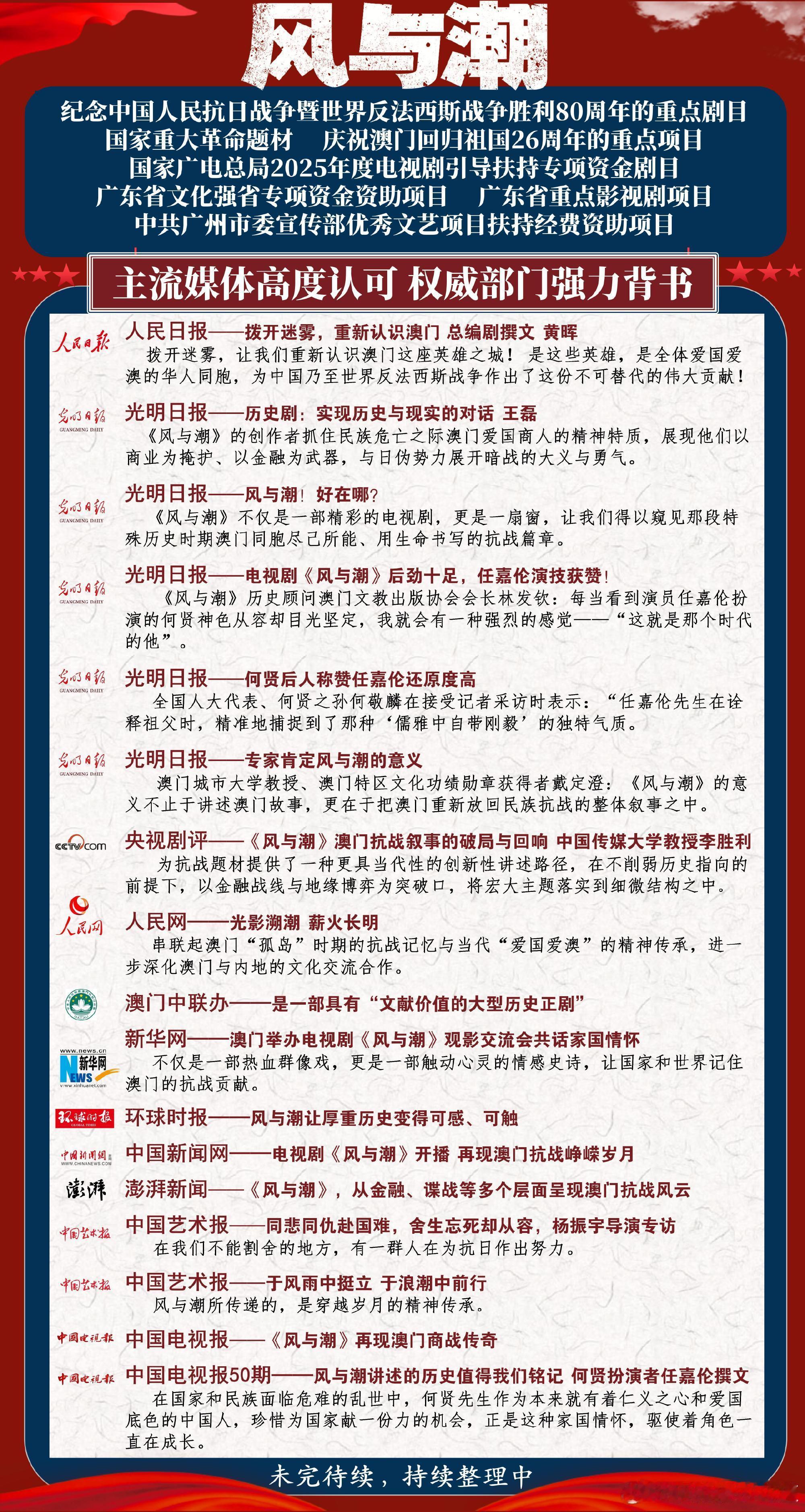 风与潮的含金量还在上升,主流媒体的夸赞一直有。