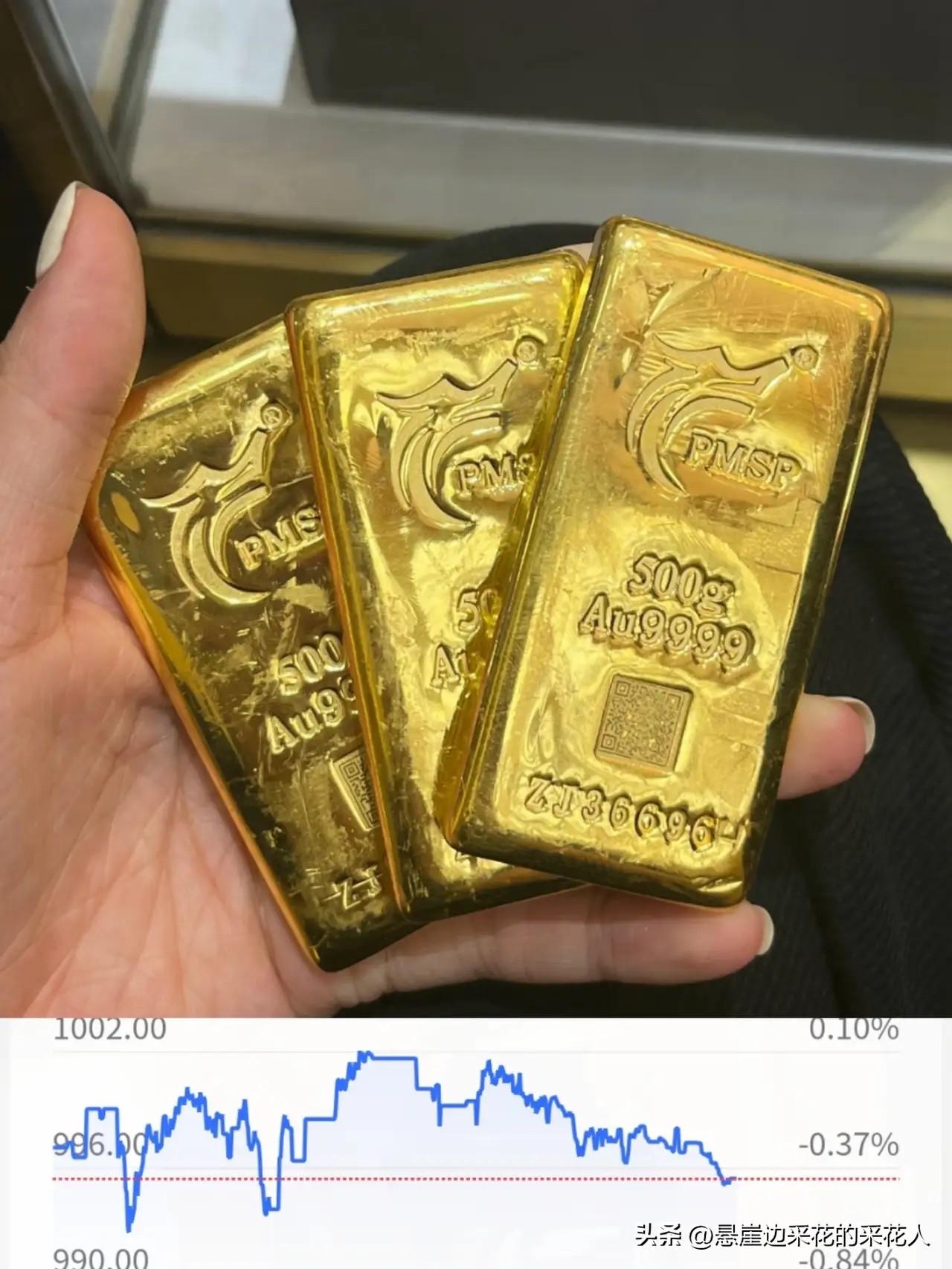 预言成真啦!今天还没卖黄金的朋友,听我一句劝,先别出手了! 昨天就有博主说今天金价会下行,我果断卖空了,上次968元买的,昨天1002元出手,小赚900多块零花钱,美滋滋~ 没卖的也别慌,等10号再考虑加仓就行,到时候金价大概率会落到950-970元区间,是个不错的入场机会。 不过得提醒一句,实物黄金玩家可别跟着折腾,安心拿住就好。毕竟实物金是长期保值的,跟纸黄金这种适合短期波段操作的不一样,来回买卖反而亏手续费和溢价。 我觉得投资黄金心态很重要,别贪多追高,小打小闹挣点就挺好。而且现在金价高位震荡,有回调风险但长期趋势还在,大家得根据自己情况来,别盲目跟风,控制好仓位才靠谱!