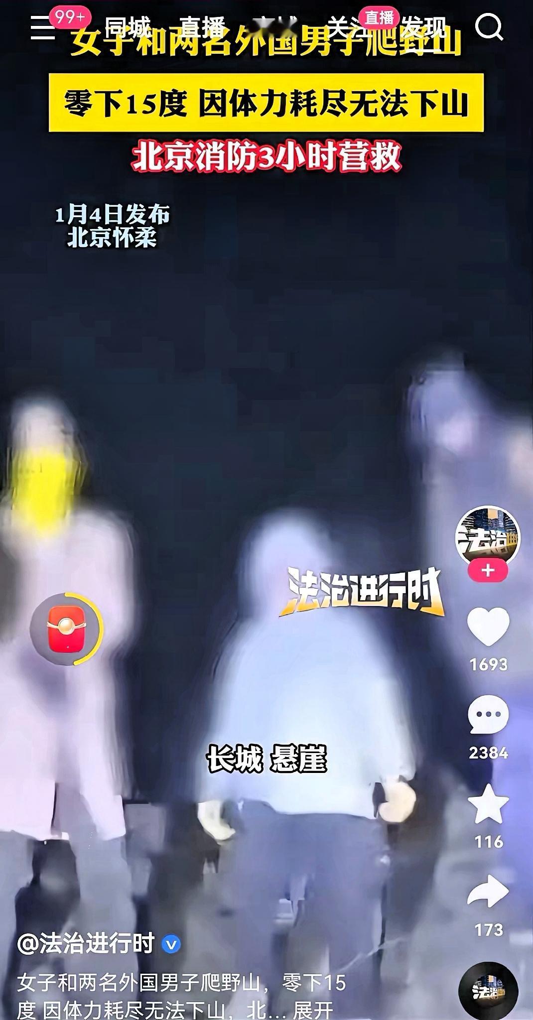这女的厉害了,全网皆知!北京一女子和两名外国男子夜爬野山,因体力耗尽无法下山,被