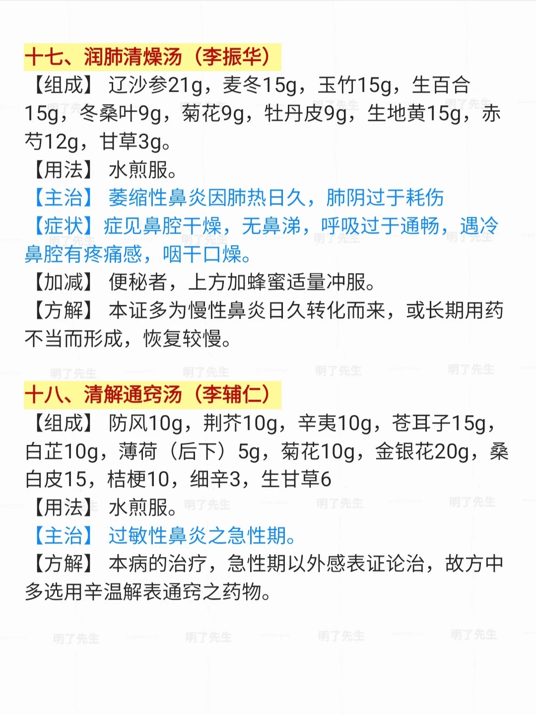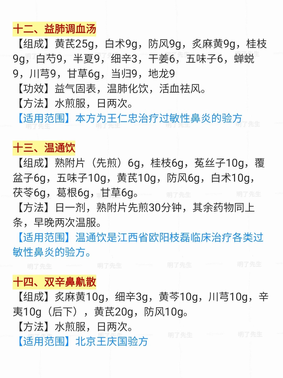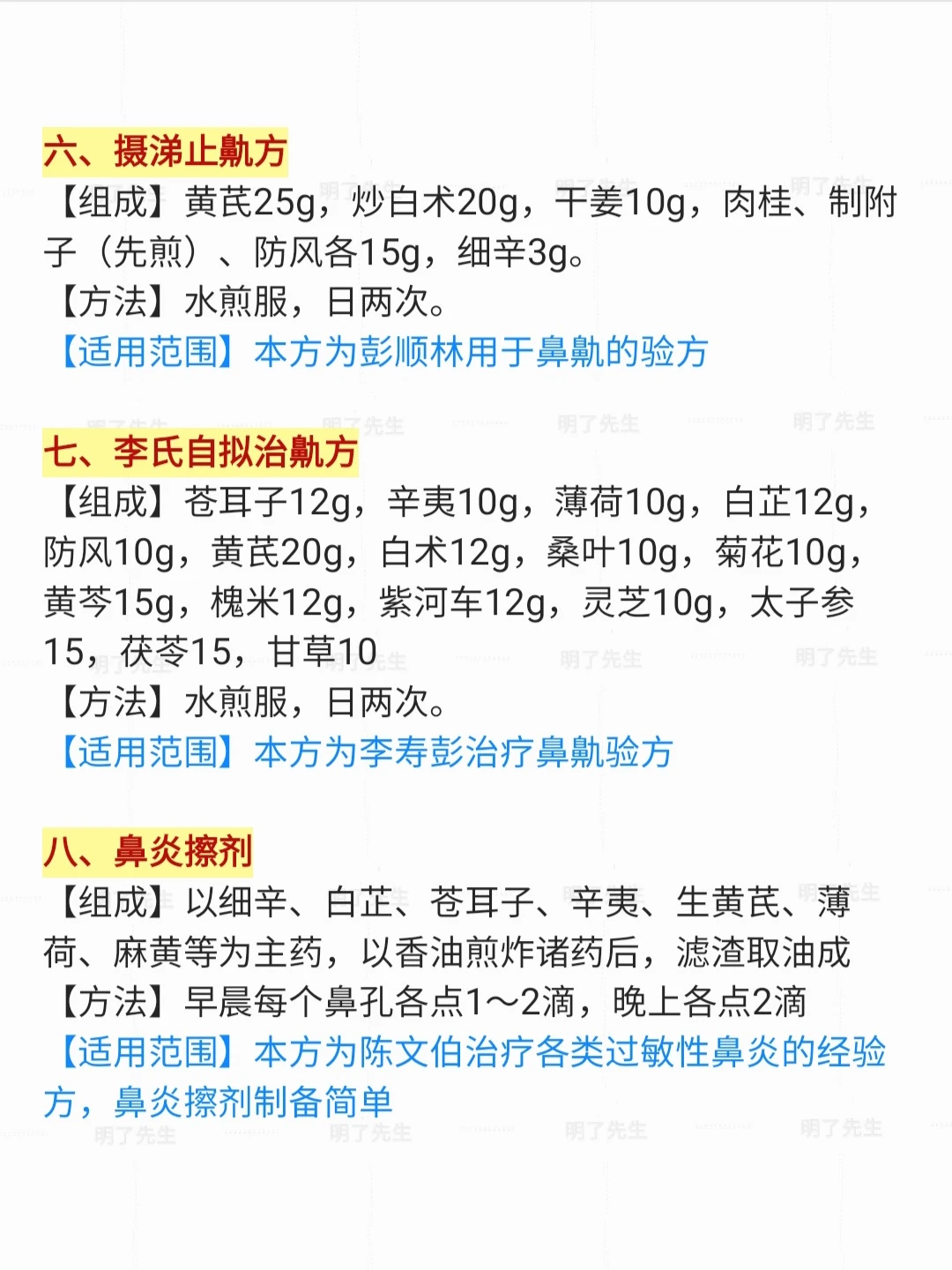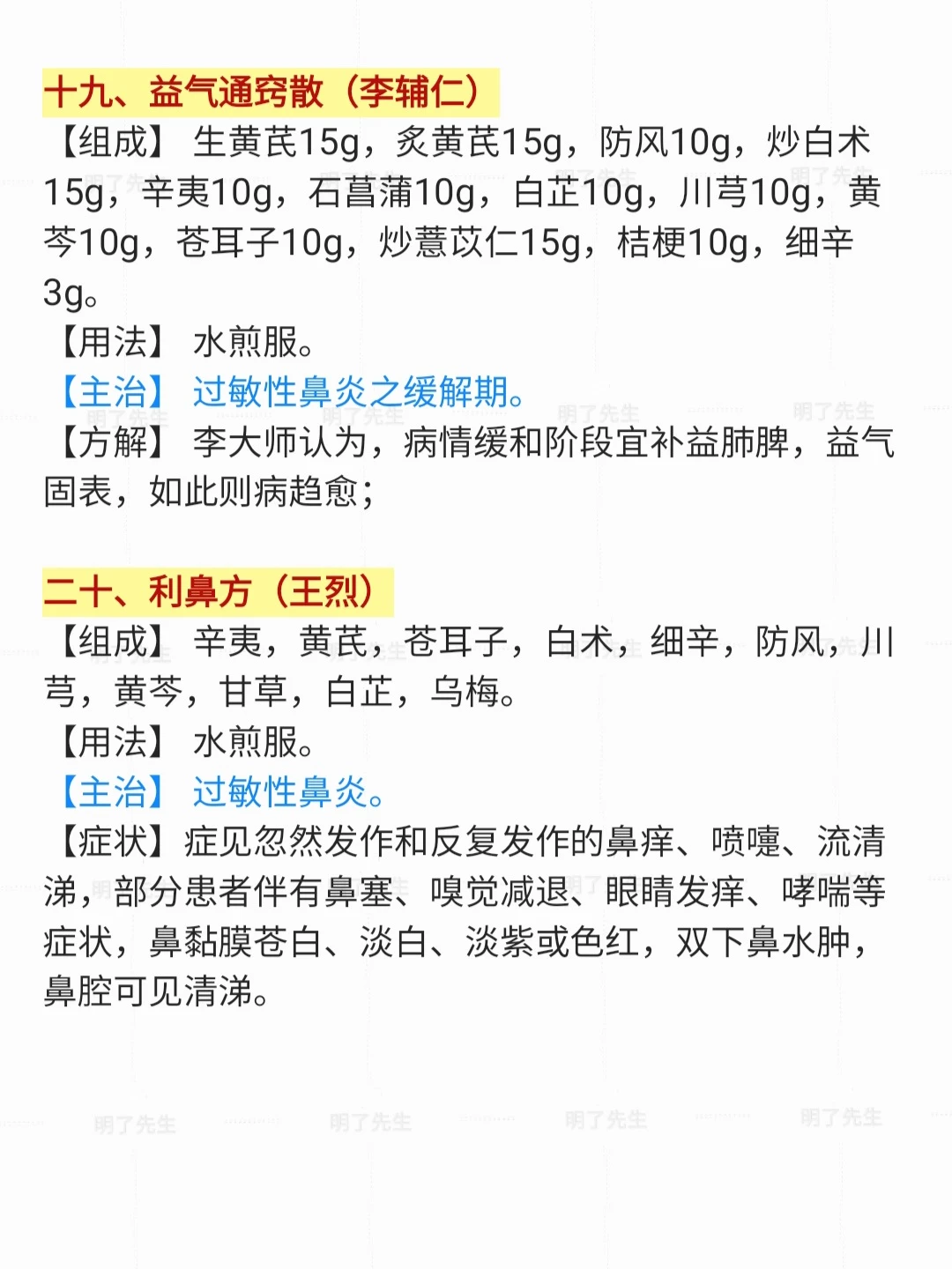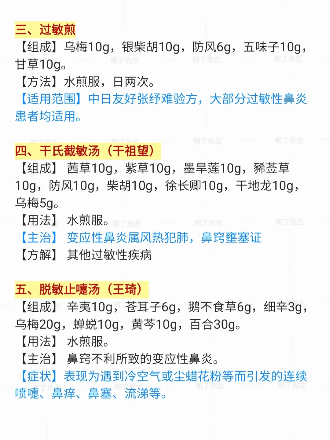 市面上常用“过敏性鼻炎”18位老中医效方